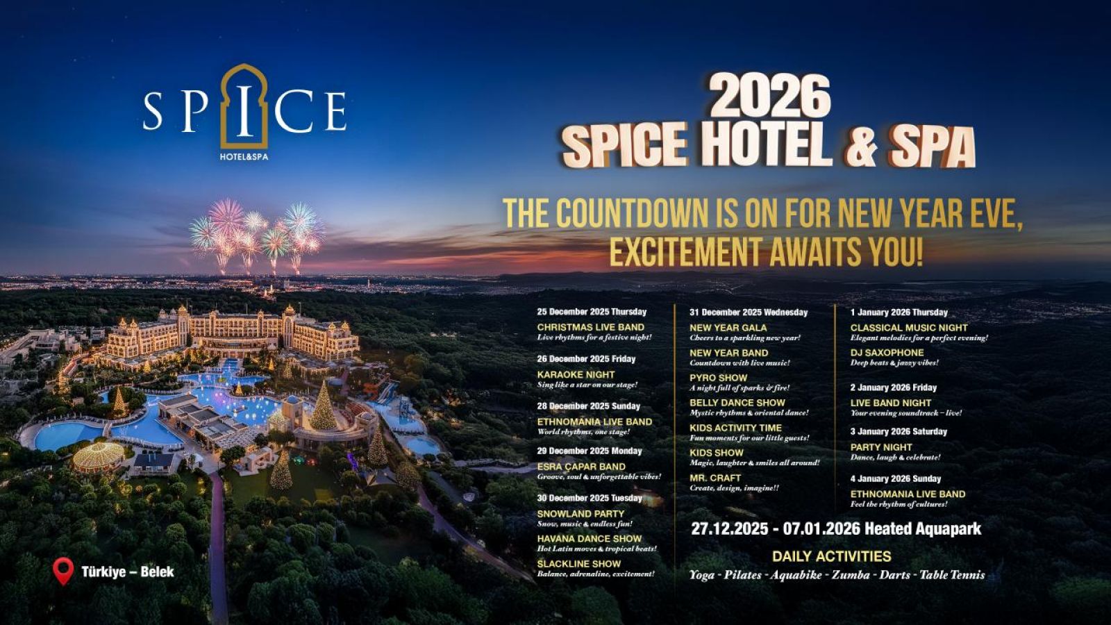 Spice Hotel & Spa предлага настаняване на база ол инклузив и включва 3 а-ла-карт ресторанта, в които се сервират турски, италиански и азиатски ястия(с предварителна резервация съгласно концепцията на хотела). На откритата тераса гостите могат да се насладят на коктейли от различните барове в комплекса.