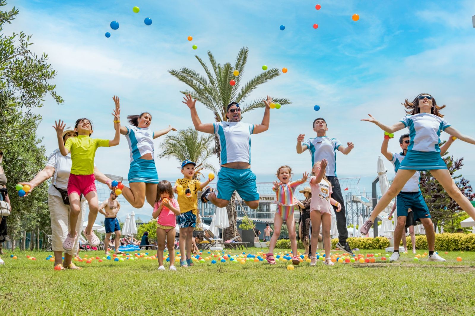 За децата: 2 открити и 1 закрти детски басейн, детска площадка, мини клуб (4-12 г), детска анимация, детска количка (под наем).