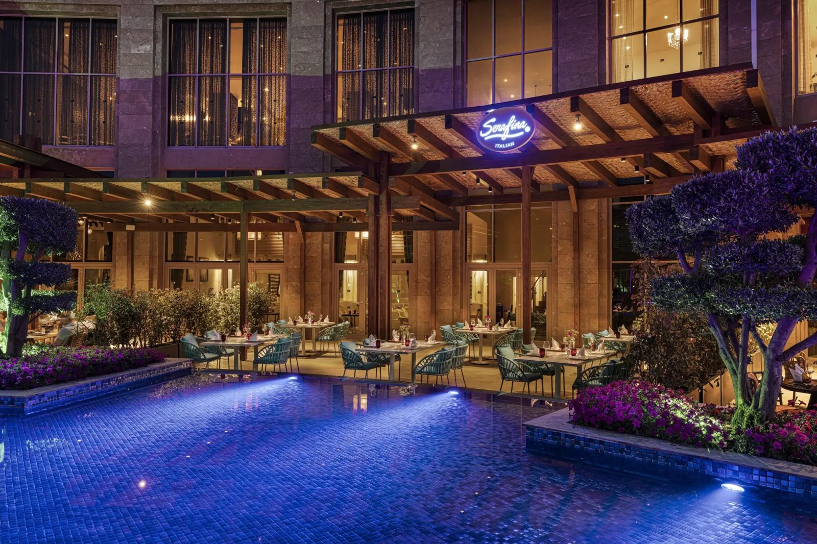 Основен ресторант, 5 а-ла-карт ресторанта ( Ливански, Италиански, Азиатски, Интернационален, Средиземноморски), 9 бара, 2 закрити басейна, 2 открити басейна, 2 детски басейна. Безплатни услуги: турска баня, сауна, парна баня, фитнес център, аквапарк, дартс, водно колело, тенис на маса, йога, аеробика, плажен волейбол, баскетбол, стрелба с лък, анимационни програми, уроци по танци, уроци по готварство, интернет кафе, кино, жива музика, амфитеатър. Платени услуги: масаж, СПА, тенис кортове, голф, водни спортове, планинско колоездене, уроци по тенис, билярд, магазини, коли под наем, лекар, бизнес център, пералня, химическо чистене, фотограф, фризьор. ПЛАЖ: Собствен, пясъчен. Чадъри и шезлонги на плажа и при басейна – безплатно.