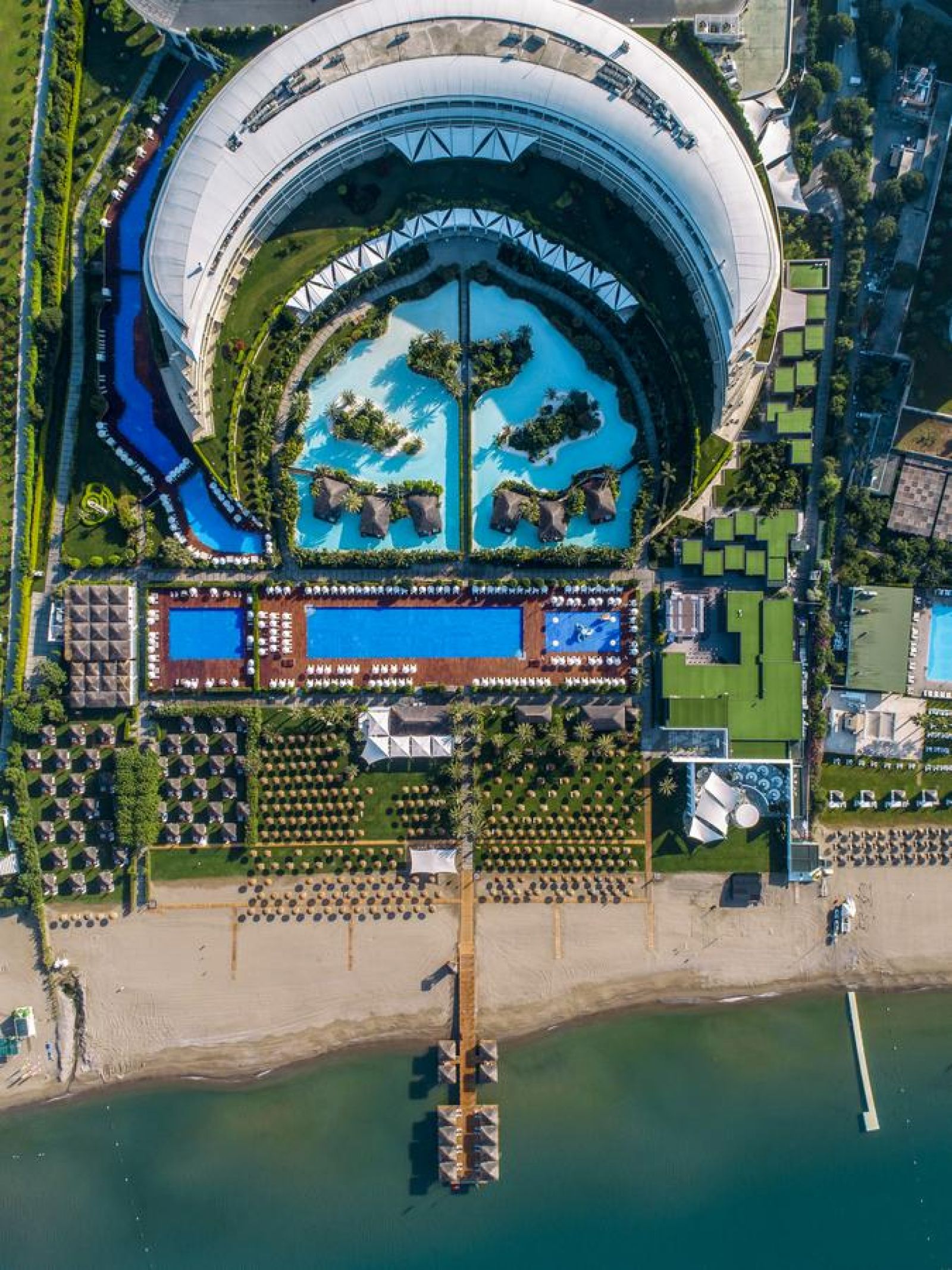 Хотелът разполага с 512 суита и вили.Стилните суити са обзаведени в успокояващи цветове и предоставят много пространство. Всички помещения за настаняване са оборудвани с: джакузи и душ, сешоар, халат, чехли, централен климатик, телевизор, телефон, мини бар (разхладителни напитки, бира, чипс, ядки, шоколад – зарежда се ежедневно, безплатно), сейф (в стаите, безплатно), балкон.