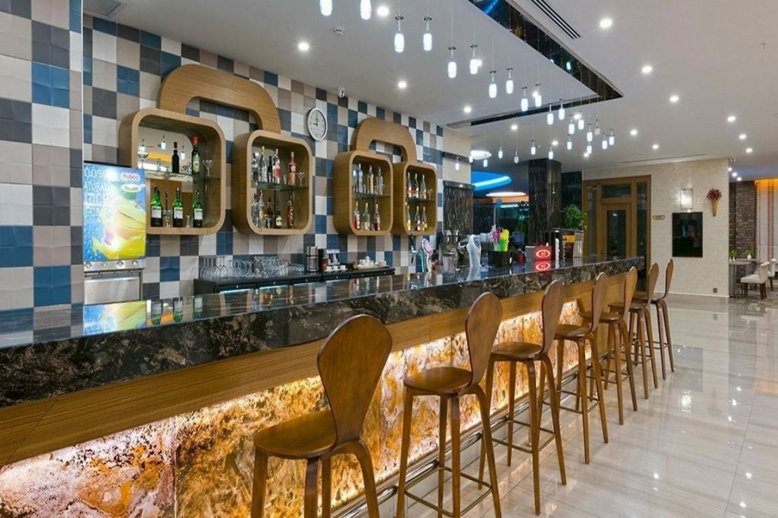 На територията на хотела: Хотелът предлага разнообразни услуги, включително 370 кв.м открит басейн, отопляем вътрешен басейн, 150 кв.м аква басейн, основен ресторант, два а ла карт ресторанта, шест бара, включително бар на плажа и бар на басейна, пералня (срещу заплащане), безплатен Wi-Fi на място, паркинг, три конферентни зали с различна големина, спа център и салон за красота. .