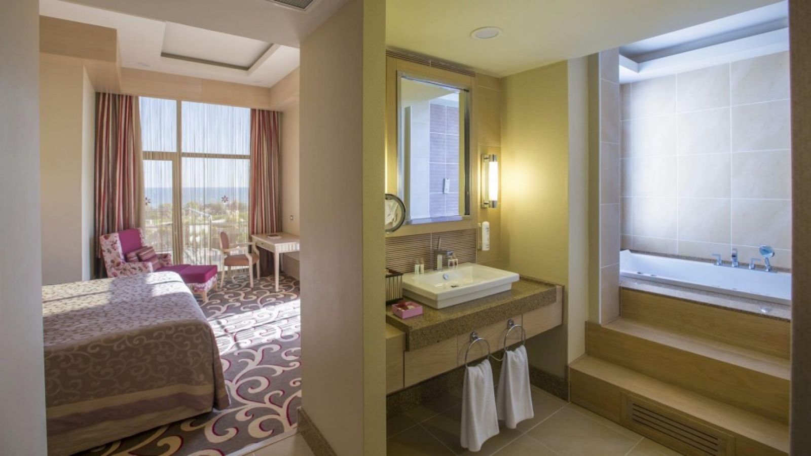 В стаите: Хотелът разполага с 571 стаи. Всички стаи са оборудвани с: централен климатик, баня с вана/душ, сешоар, халат, чехли, телевизор - LCD, телефон, достъп до интернет (безплатно), мини-бар (зарежда се ежедневно с безалкохолни напитки и бира - безплатно), сейф (в стаите, безплатно), балкон или тераса. Почистване на стаите – ежедневно.