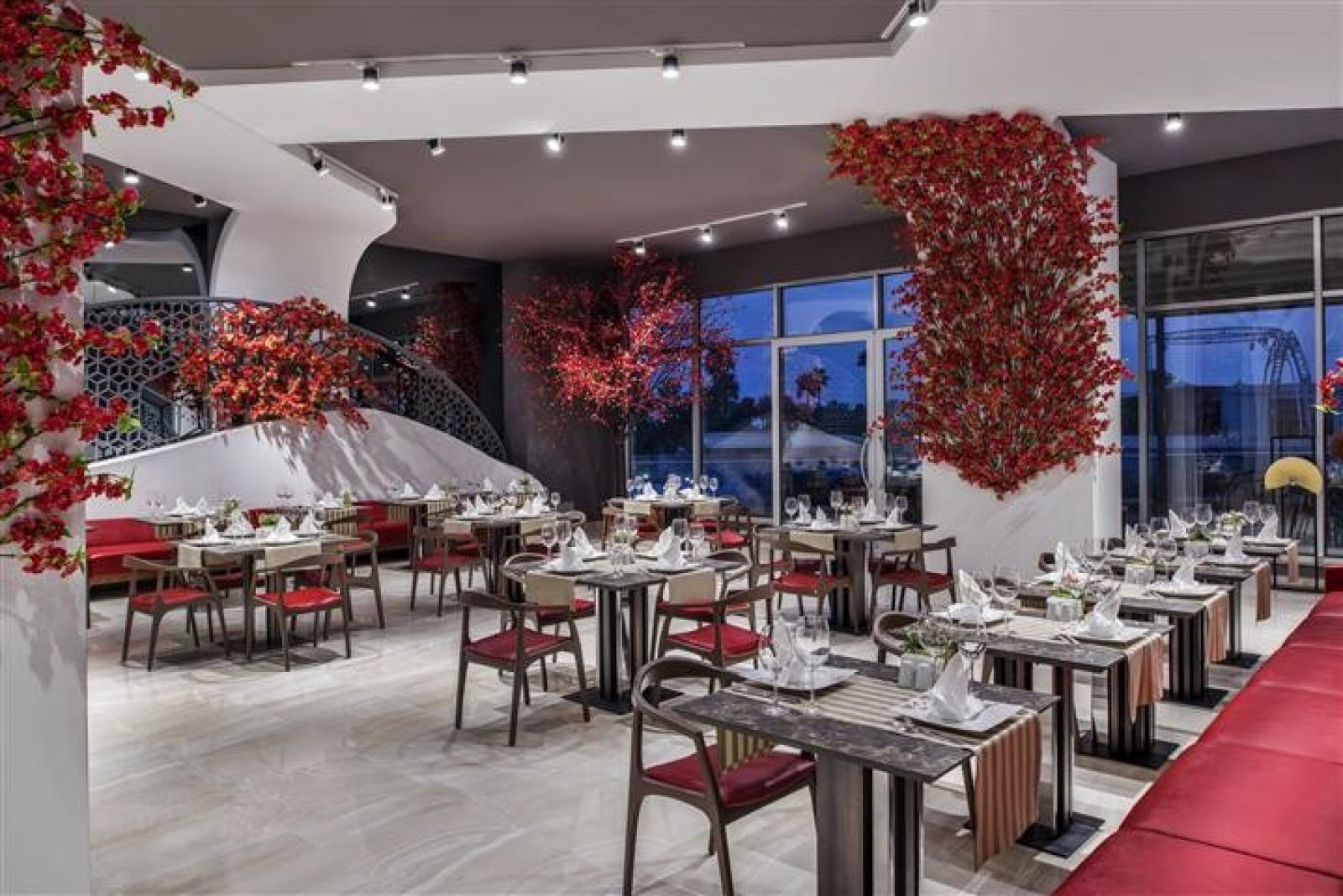На територията на хотела: На територията на хотела има конферентни зали (срещу заплащане), амфитеатър, няколко открити басейна и воден парк за деца. За възрастни има басейн с пързалки и водни атракции. Хотелът разполага с основен ресторант, отворен от 07:00 до 21:30 часа, и няколко а-ла-карт ресторанта, включително италиански, мексикански, далекоизточен, гръцки, турски и рибен. Има още месен ресторант, пицария, барове край басейна, на плажа, на терасата, на кея и други заведения.