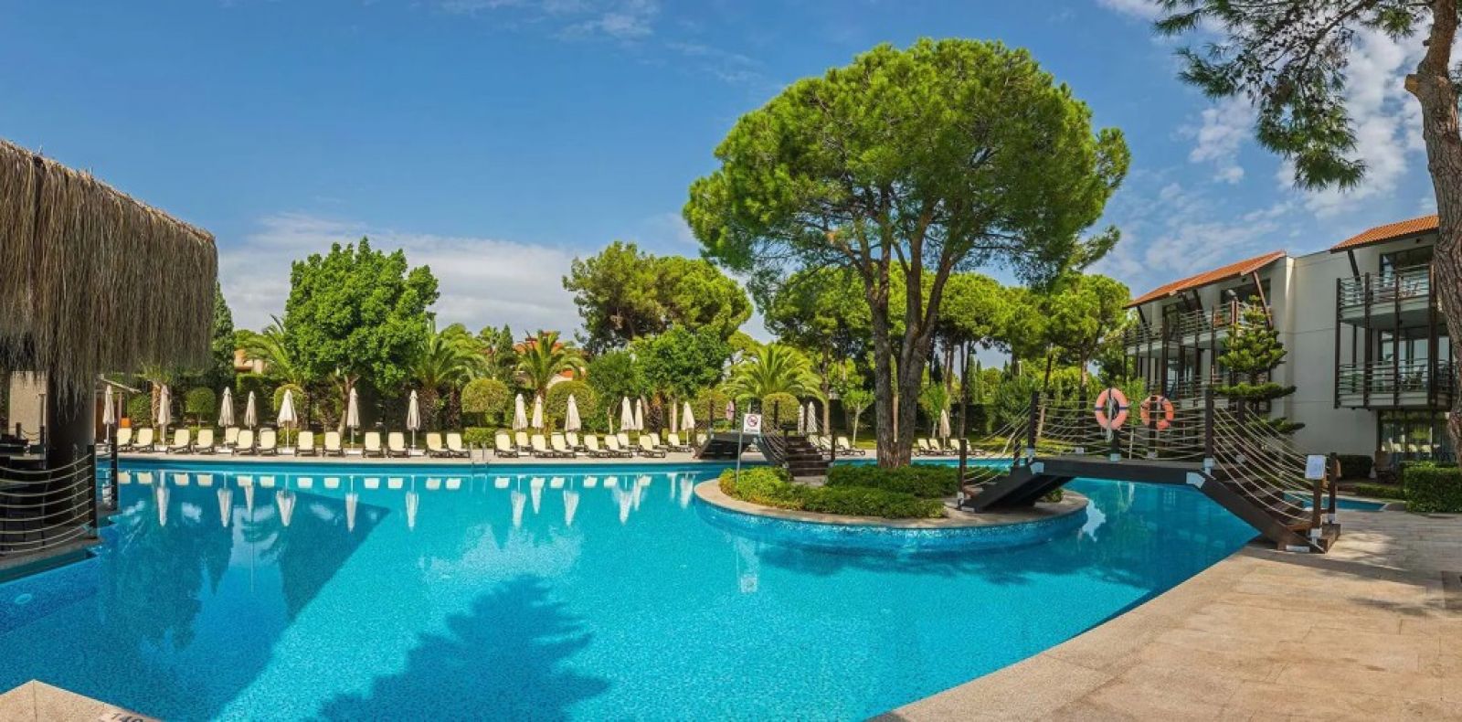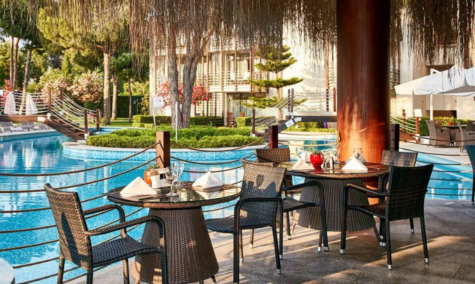 Разположение: Хотелът се намира на 40 км от междунардно летище Анталия, на 50 км от центъра на Анталия, на 7 км от Белек, на брега на морето. Построен е през 1997 г. върху територия с обща площ от 190.000 m².
