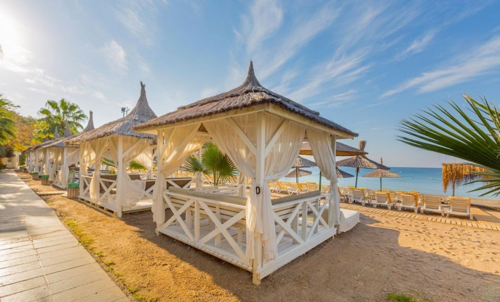 Плаж: Собствен, пясъчно - чакълест. Чадъри, шезлонги и матраци на плажа и при басейна - безплатни. Плажни кърпи – срещу депозит.