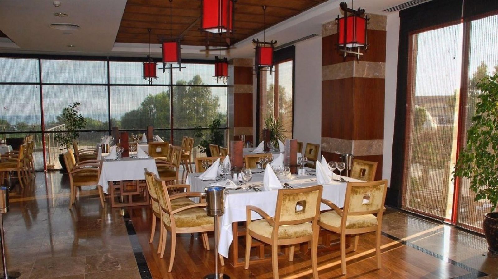 На територията на хотела: Основен ресторант (има диетично меню), 4 ресторанти a la carte (османски, италиански, азиатски, барбекю - с предварително записване; за целия престой се полага едно посещение на избран ресторант - безплатно), 3 бара, дискотека, 2 открити и 1 закрит басейн, 5 пързалки за деца, Спа център, магазини, химическо чистене, фризьорски салон, 13 конферентни зали.