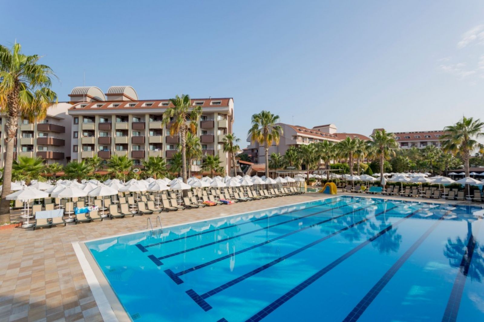 В стаите: Хотелът разполага с общо 351 стандартни стаи, 172 фамилни стаи и 12 апартамента. Всички стаи са оборудвани с климатик, телевизор, телефон, баня с душ, сешоар, минибар ( минерална вода - безплатно ), сейф (срещу заплащане), балкон. Почистване на стаите - всеки ден, смяна на спално бельо - 3 пъти седмично, смяна на кърпи - всеки ден.