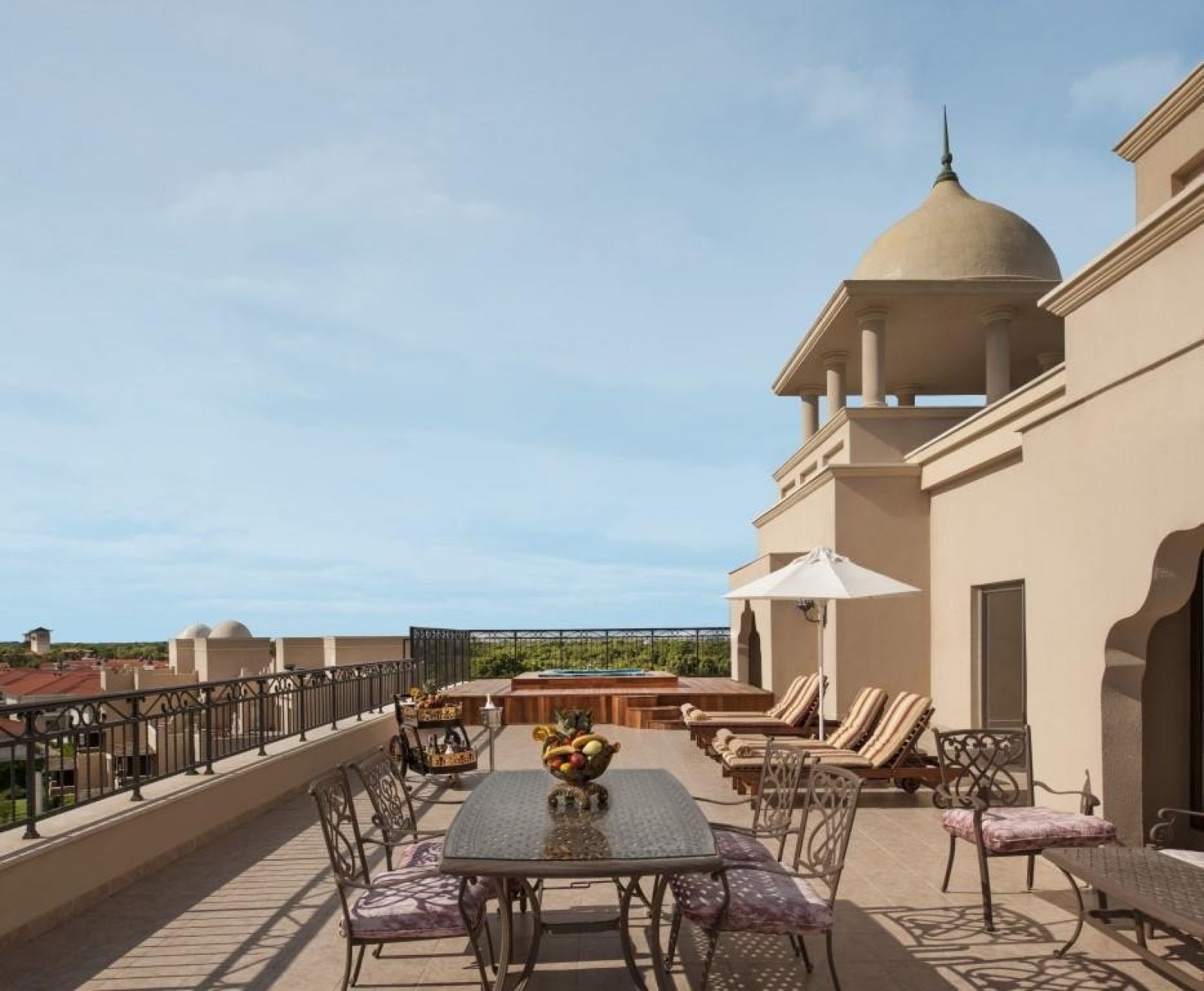 В стаите: Състои се от основна 5-етажна сграда с 6 панорамни асансьора, допълнителна 4-етажна сграда Анекс, 40 двустайни фамилни стаи (Family Room), 3-етажни стаи и 22 вили, разположени в градината на ВИП зоната. За удобство има 4 асансьора. Хотелът разполага с 546 стаи с изглед към морето, басейна, градината и планината.