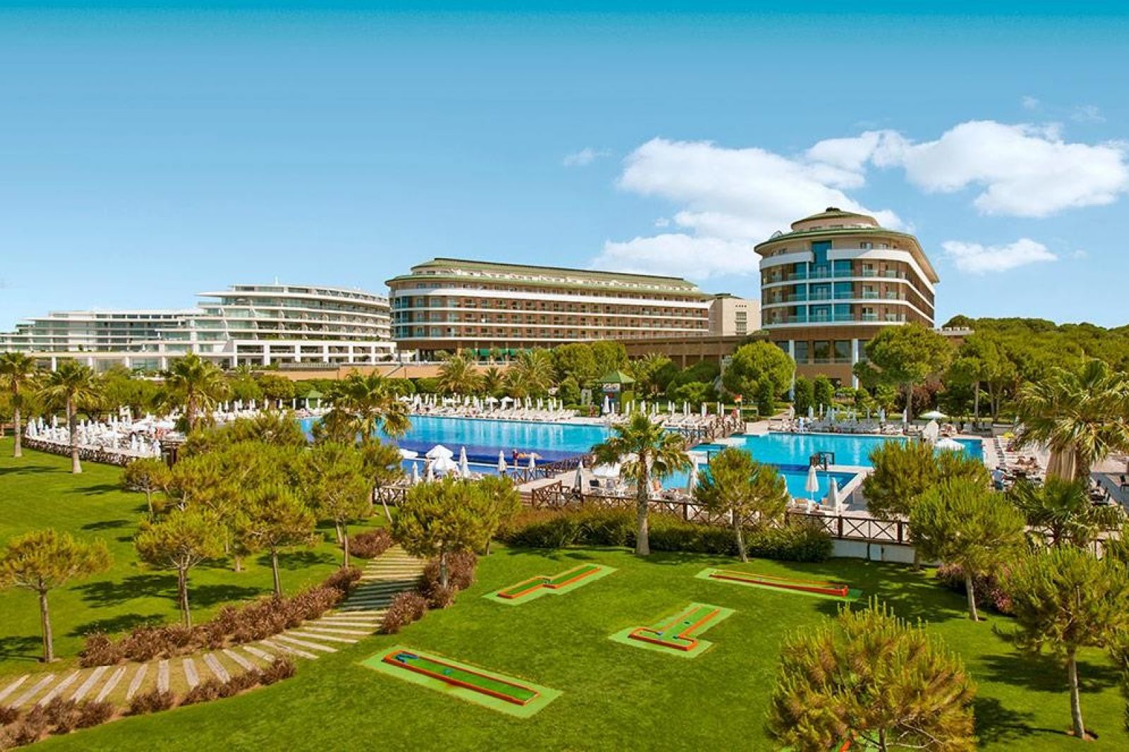 На територията на хотела: 2 основни ресторанта (1 ресторант само за възрастни 16+, има диетична храна), 7 ресторанта a la carte (турски, китайски, гръцки, рибен, мексикански - 1 път безплатно с резервация; италиански, японски и стек хаус - с предварително записване, платено), 3 снек ресторанта, 15 бара (един от тях работи 24 часа), сладкарница, дискотека, 8 открити басейна (в единия от тях деца до 16 години не се допускат), 1 закрит басейн (с подгряване през зимата), Аквапарк (6 пързалки за възрастни + аквапарк за деца), спа център, фризьорски салон, магазини, лекарски кабинет, пералня, 2 конферентни зали.