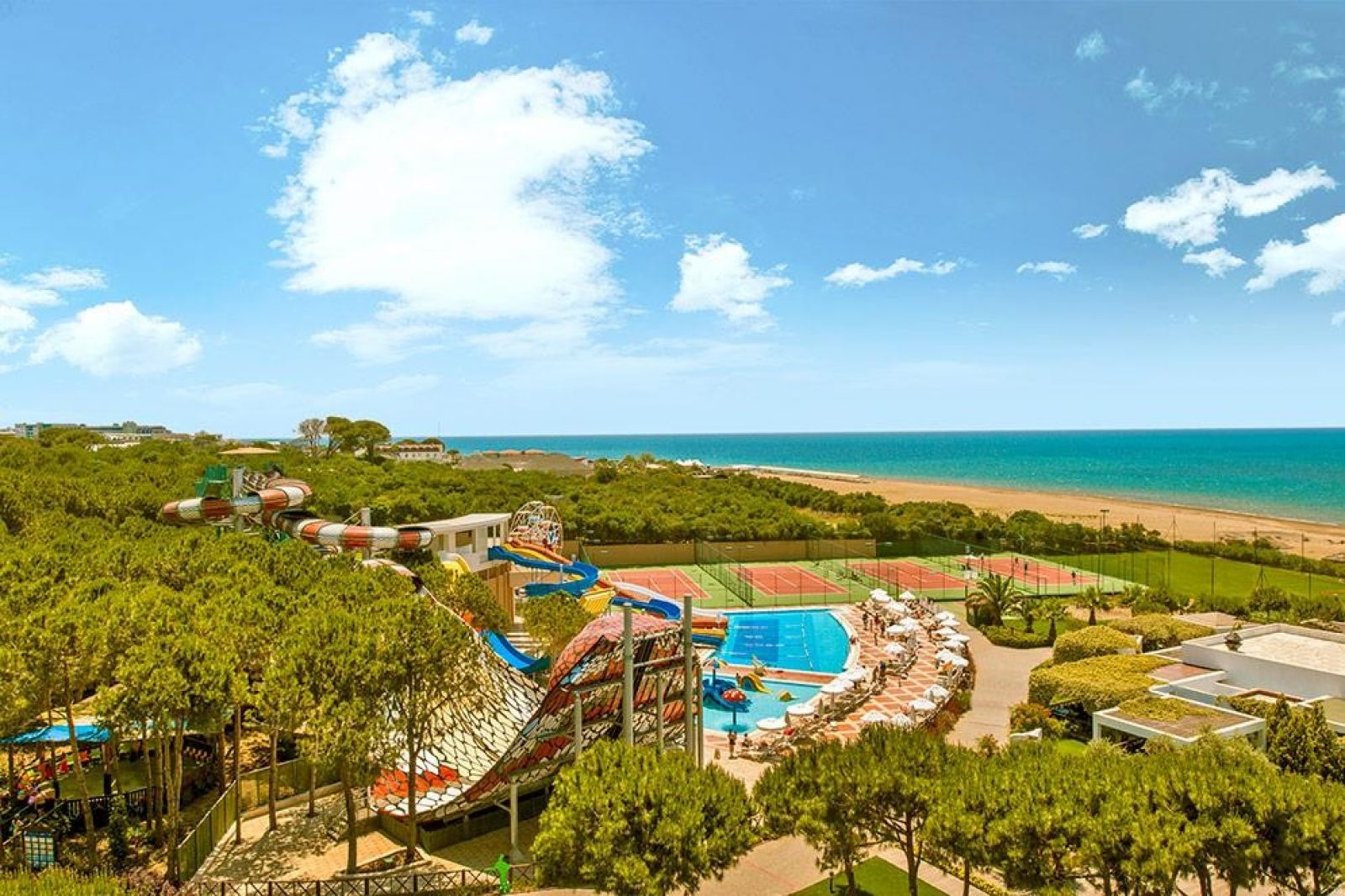 Плаж: Частният пясъчен плаж се намира пред хотела. Дължината на плажа е 300 м. Два пирса (единият за 16+), 12 платени павилиона: 6 Family Junior Pavillion с деца и 5 Adult Junior Pavillion, на пирса за възрастни 16+(деца под 16 години не е позволено). Шезлонги, чадъри, матраци, плажни кърпи - безплатно. Вход в морето - плитък пясък.