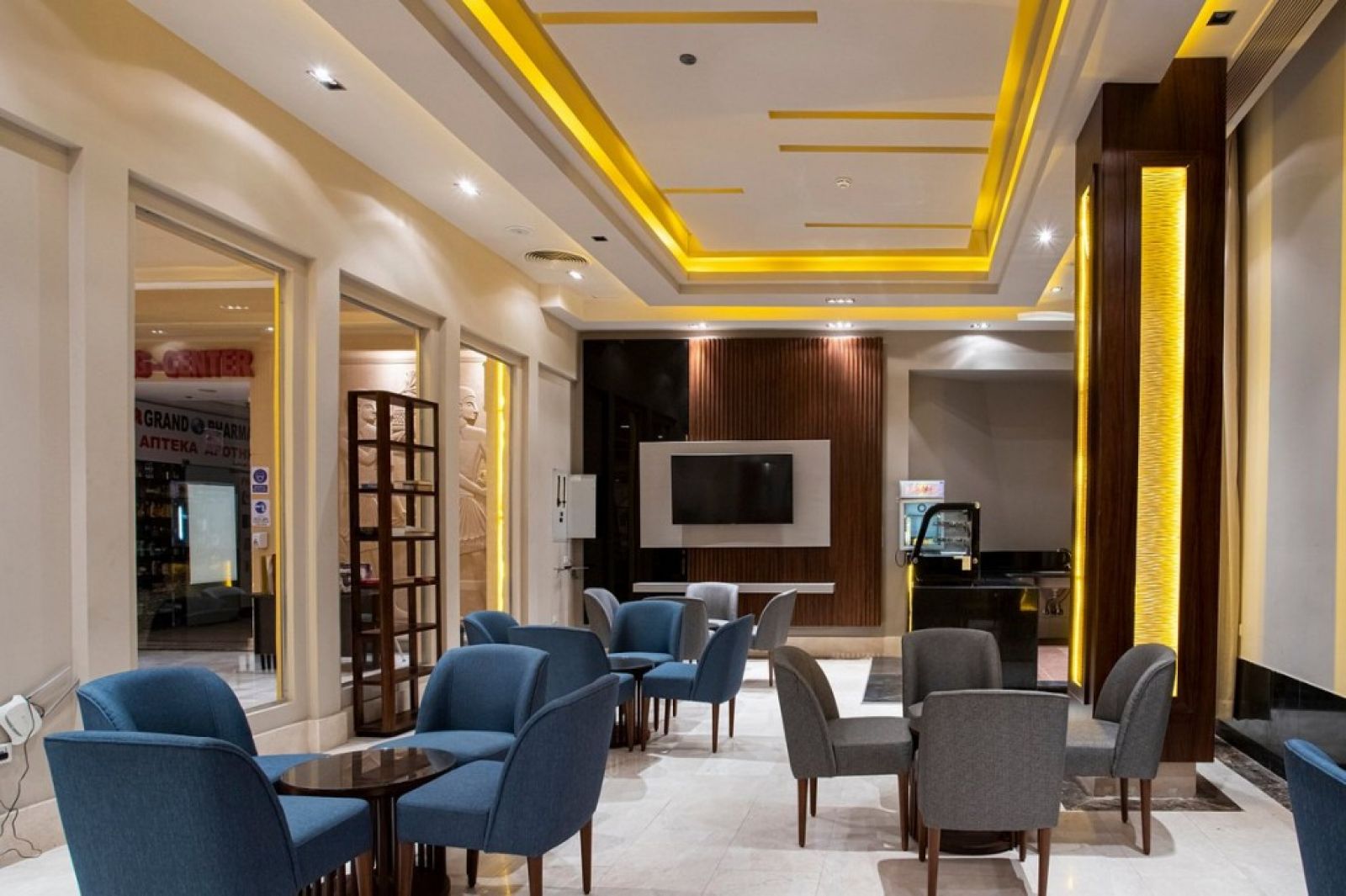 На територията на хотела: Основен ресторант Blue Lagoon, 2 а - ла - карт ресторанта, 4 бара - лоби бар Сфинкс (10:00-01:00), Дайкири бар край басейна (10:00-17:00), снек-бар на плажа, ориенталско кафене (18:00-01:00), открит басейн (с подгряване през зимния период), неотопляем аква парк през зимата за възрастни и деца (3 пързалки за възрастни и 3 пързалки за деца, работно време: 10:00-12:00, 14:00-16:00) Wi - Fi (безплатно - в лоби).
