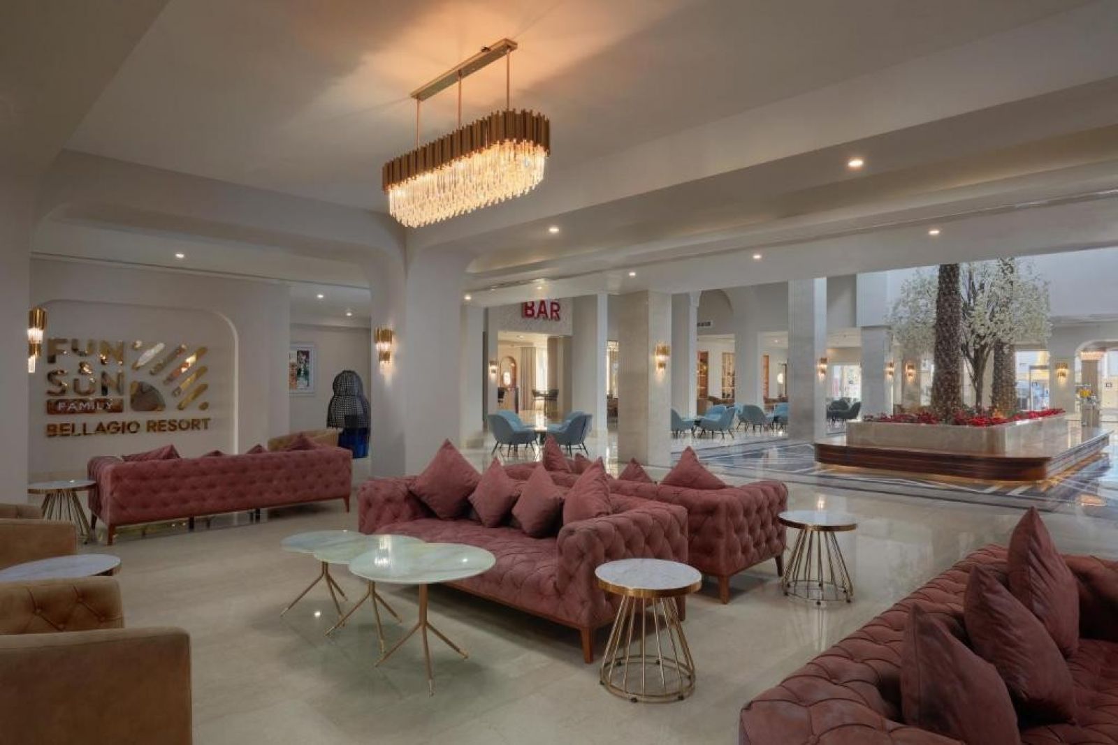 В стаите: Хотелът разполага с общо 450 стаи, от които Bungalow room (28m2), Deluxe room (32m2), Superior room (40 m2), Family room (50m2), Bellagio Suite (100m2), Bellagio villa( 600m2). Всички стаи са оборудвани с климатик, телевизор, телефон, баня с душ, сешоар, минибар (срещу заплащане), сейф (безплатно), балкон. Почистване на стаите и смяна на кърпи - всеки ден, смяна на спално бельо - 4 пъти седмично.
