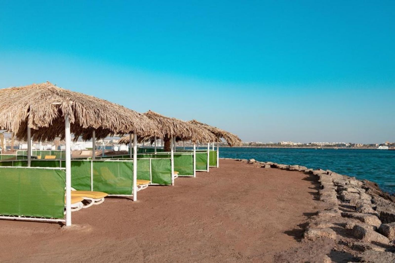 Разположение: Намира се на 30 км. от летище Хургада, на 40 км. от центъра на Хургада, в района на Макади бей, на брега на морето.