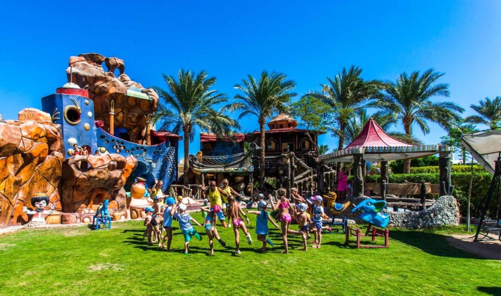 За децата: мини зоопарк, детски клуб (от 5 до 12 години), секция за деца в басейна за възрастни (в 2 басейна, отопляеми през зимата), детска площадка, 8 водни пързалки, бебешка кошара: по заявка, безплатно, детски столчета в ресторанта.