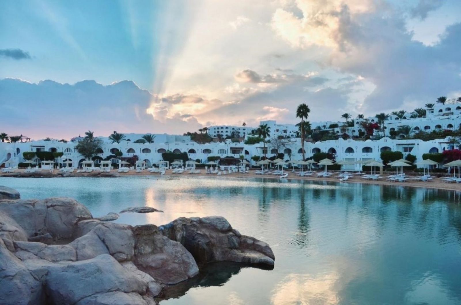 Местоположение: Топлата ориенталска атмосфера и уединението правят този хотел идеално място за релаксираща почивка. Хотелът се намира на 7 километра от летище Шарм Ел Шейх, на 5 километра от залива Наама и на 10 километра от Стария град, в района на Корал Бей, на първа линия (сгради 47 и 51).