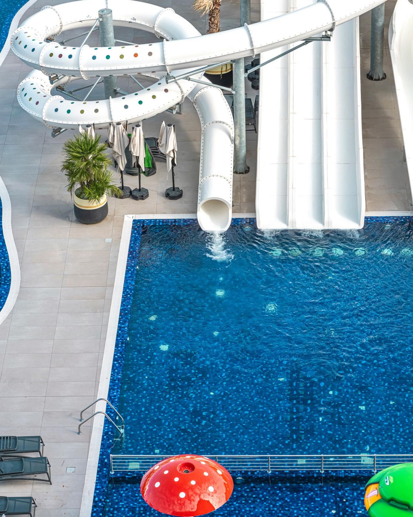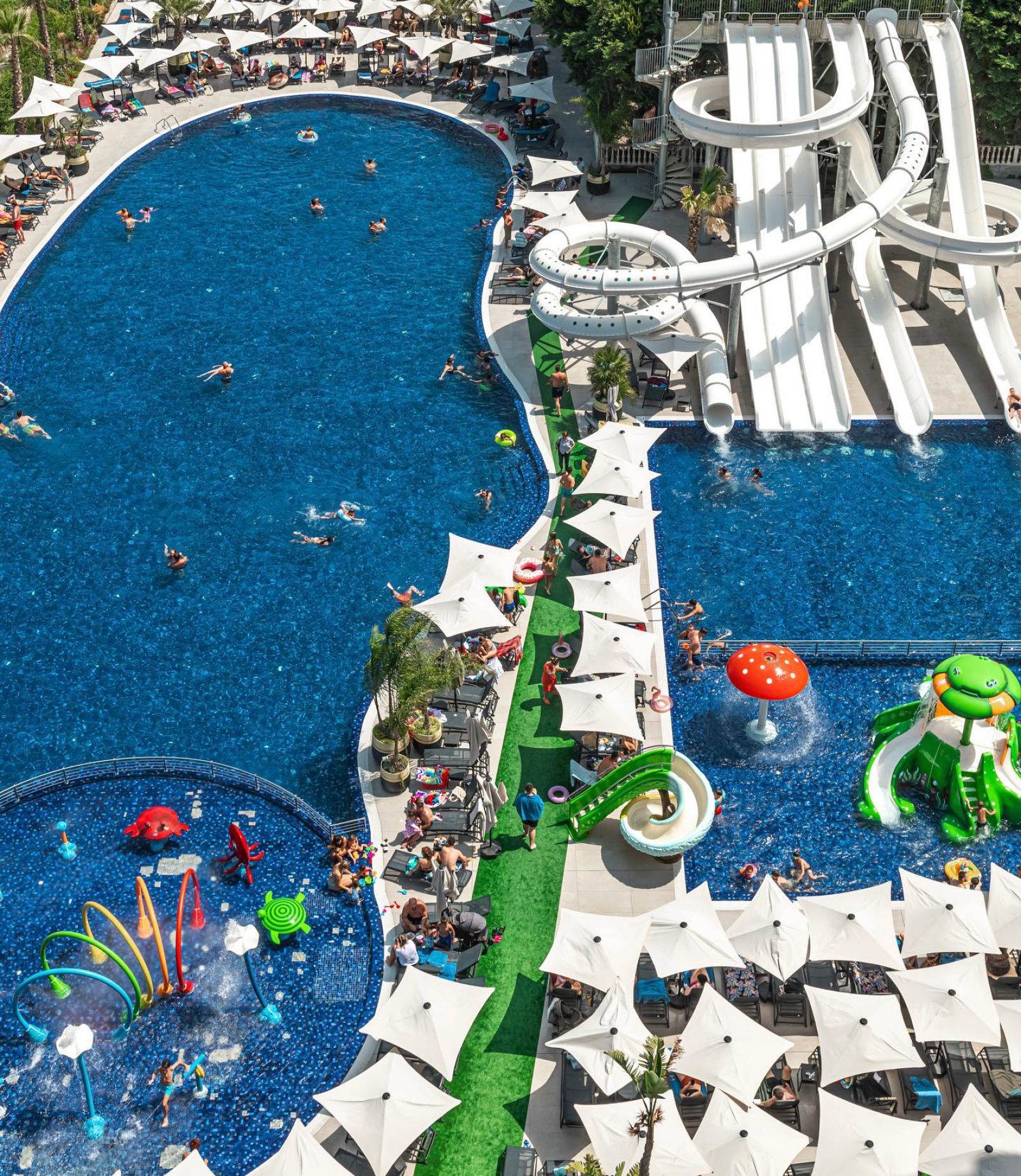 Безплатни услуги: 6 водни пързалки, външен басейн, развлекателни дневни и вечерни прогами (според програмата на хотела), тенис корт, WiFi – в общите части и в стаите