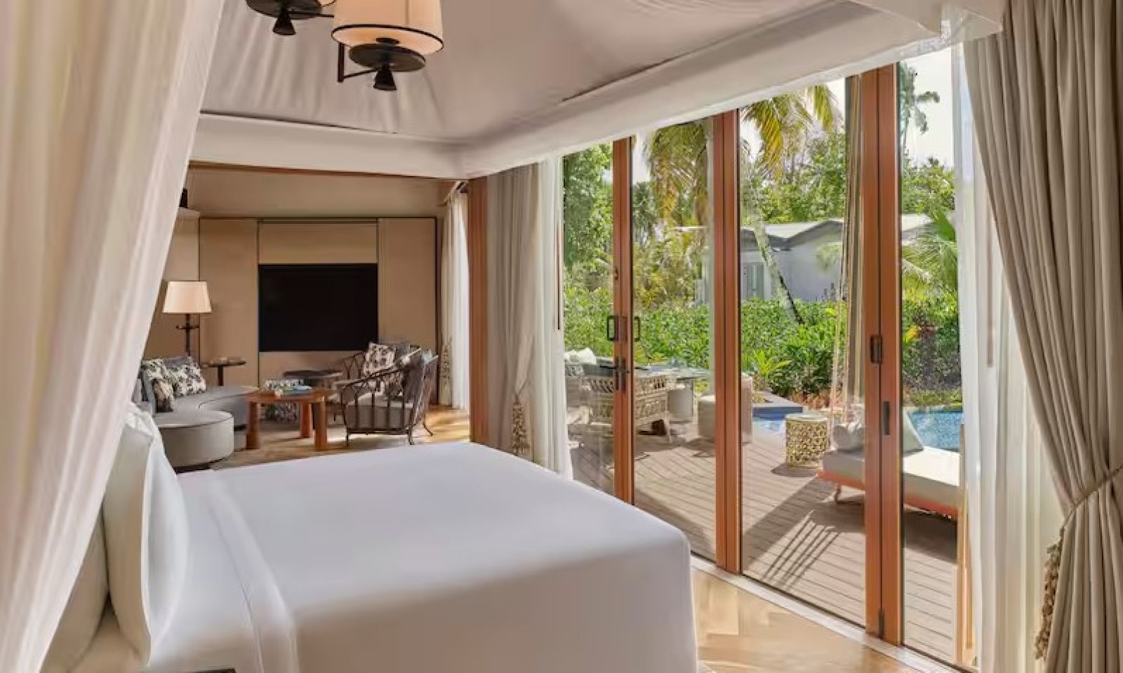 тоалетни: 1, тераса, изглед градина/море, индивидуално контролиран климатик, сателитна телевизия, канали: английски, комплект за приготвяне на чай и кафе, минибар в стаята (зарежда се ежедневно; за "Закуска" - платено, "Ол инклузив" - платено), Wi-Fi (безплатно), сейф в стаята (безплатно), дървена настилка, ежедневно почистване, телефон, частен басейн (външен басейн, местоположение: частна градина, без отопление), директен достъп до плажа, стаите са разположени на етажи: 1