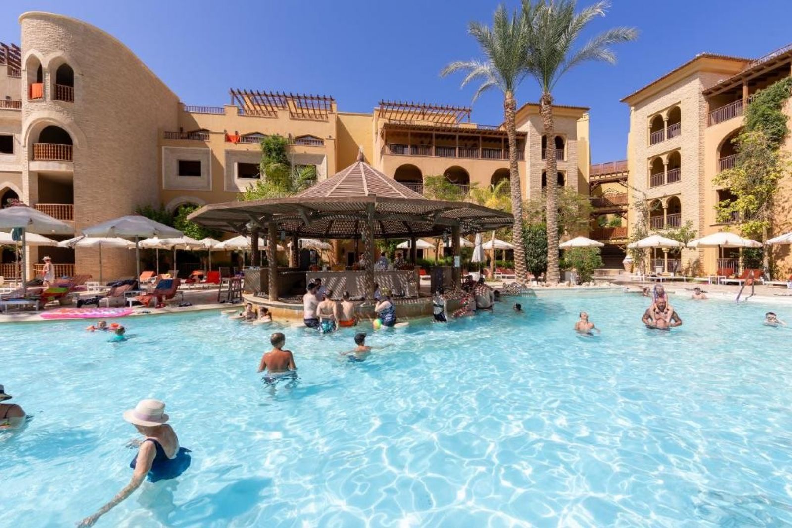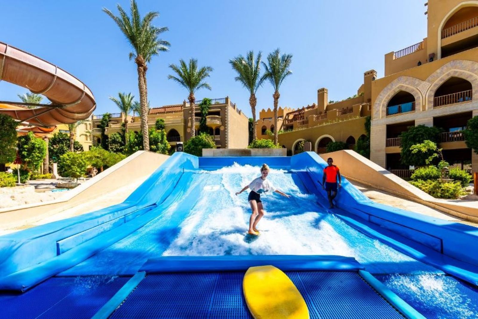 Разположение: Grand Waterworld Makadi (по-рано известен като Sunwing Waterworld Makadi) се намира на 25 км от летището в Хургада и на 35 км от центъра на града и на първа линия от брега на морето. Построен около огромен воден парк, с огромни водни пързалки, басейн с вълни, Flowrider и ленива река, това е идеалното място за бебета и деца от всички възрасти, които обичат водата.