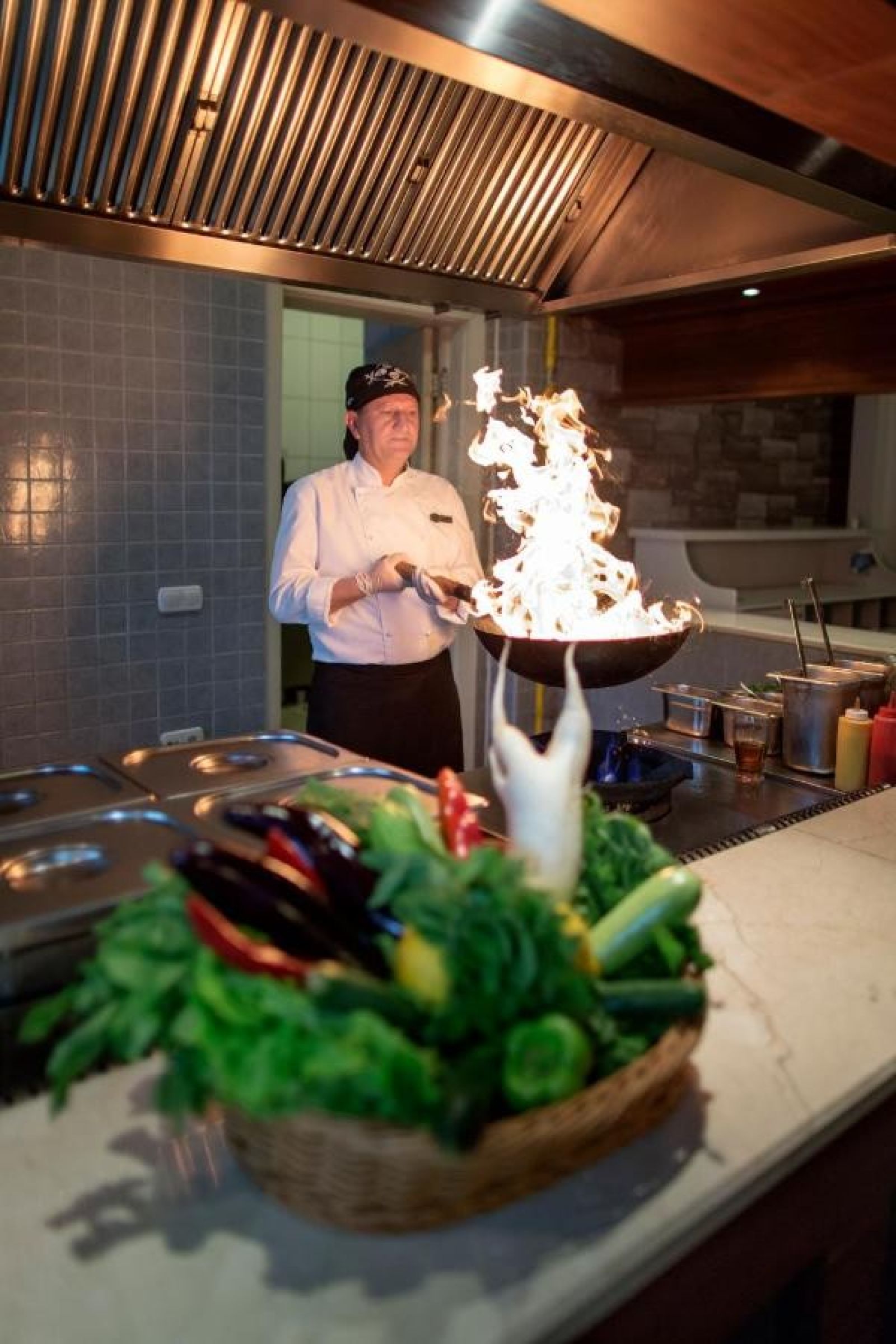 Изхранване: ALL INCLUSIVE (24 часа) -  Закуска, обяд и вечеря на бюфет, диетичен бюфет, вечеря с различни тематични вечери и турски специалитети, 2 A’la Carte ресторанта (азиатски и рибен с предварителна резервация), снек-бар до басейна и плажа, местни алкохолни напитки (водка, джин, вермут, билков ликьор, ликьори, раки, бира, различни вина и други), безалкохолни напитки, различни плодови сокове, тоник, айрян, бутилирана вода 0,5 л, турски чай и кафе, филтрирано кафе, американско кафе, еспресо, билков чай.