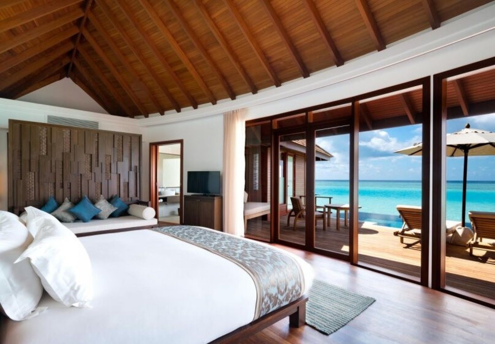Най-луксозни вили над водата са обновени в елегантен островен стил. Събудете се с гледка към океана, отпуснете се в 6-метровия инфинити басейн и се насладете на залеза от терасата или от луксозната вана.