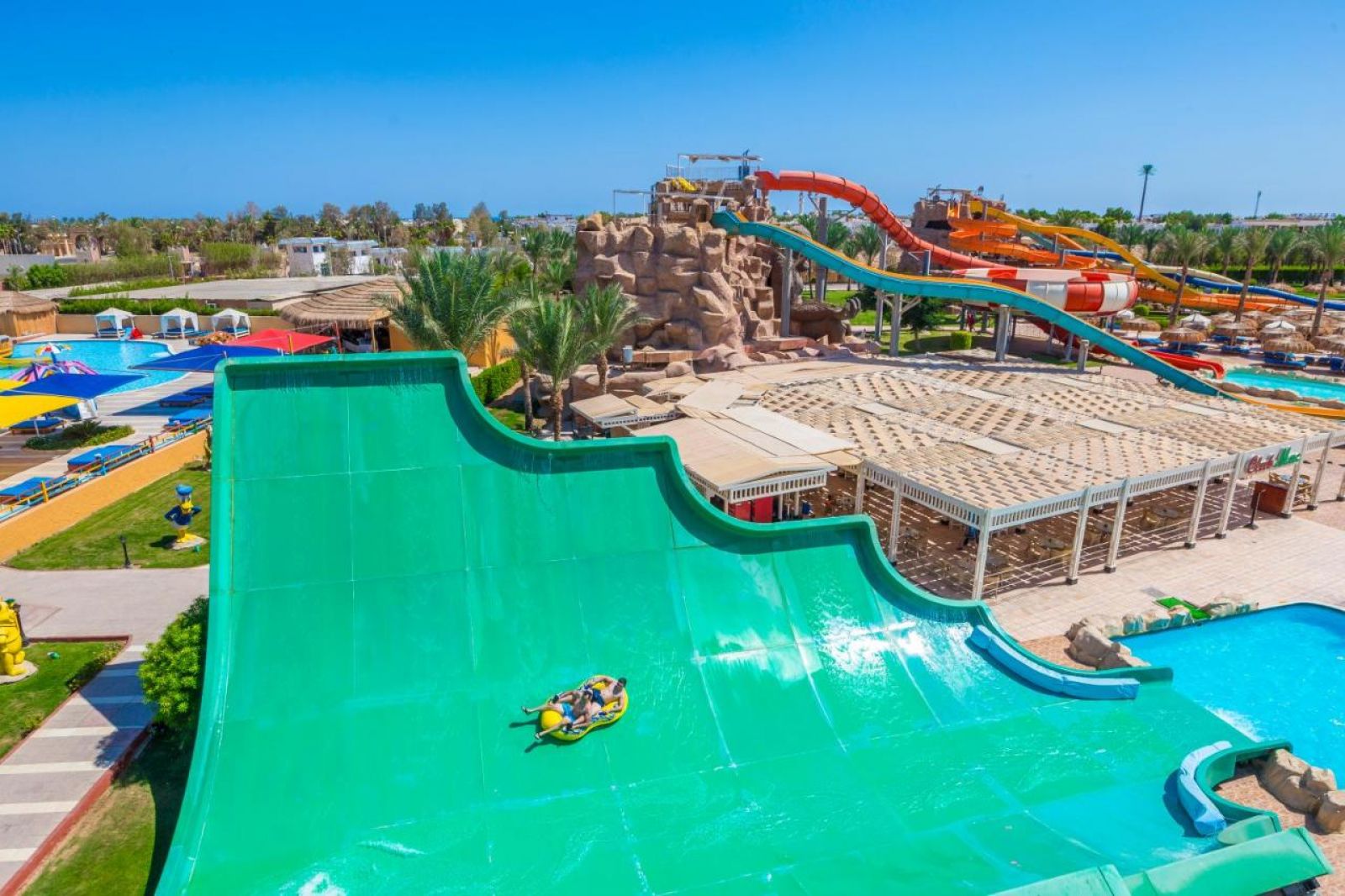 За децата: 10 детски басейна, водни пързалки, детски клуб, мини диско, детска площадка, бебешка кошара, детегледачка (срещу заплащане)