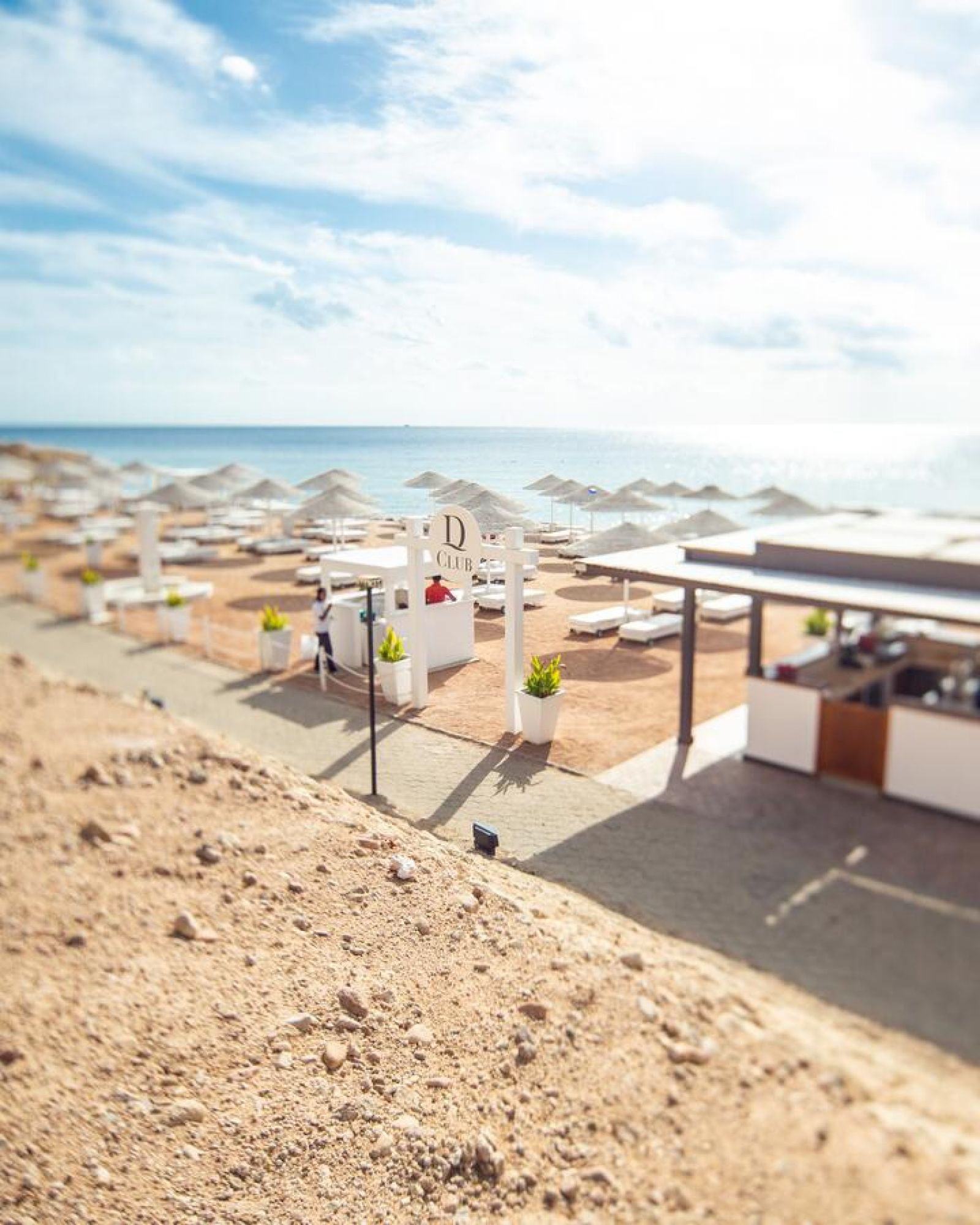 Собствен, пясъчен, 2 кея. Чадъри, шезлонги, матраци и плажни кърпи на плажа и при басейна - безплатно.