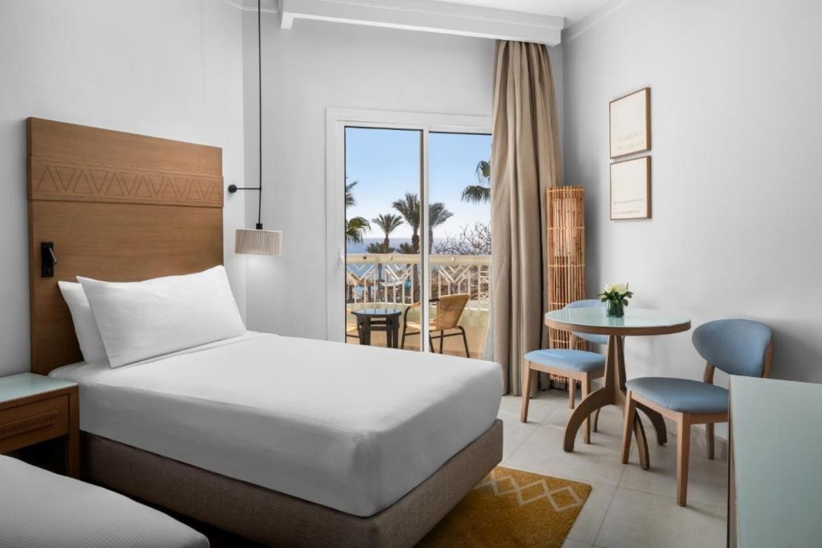 Разположение: Разположен на фона на зашеметяващия остров Тиран в залива Шаркс, DoubleTree by Hilton Sharm El Sheikh е първият хотел DoubleTree в Египет, предлагащ незабравимо преживяване на Червено море, на 10 минути от летището (около 5 км), на 5 минути пеша от площад Сохо и на 11 км от Наама бей, на брега на морето.