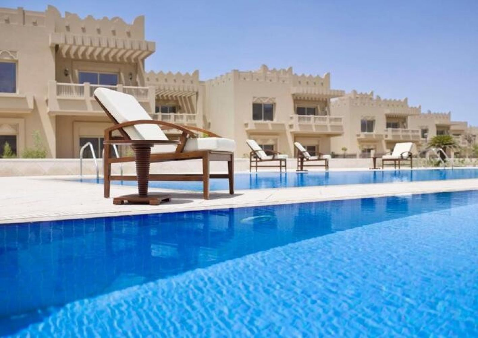 Хотел с просторна зелена зона на брега на морето в Доха.
