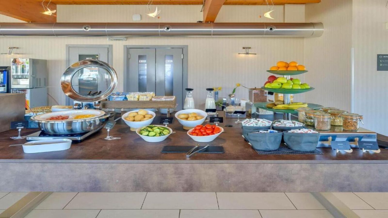 Хотелът предлага богата континентална закуска на бюфет, сервирана в светла и просторна зала. На разположение е и зона с вендинг автомати за напитки и леки закуски, както и общи пространства за кратка почивка или работа.