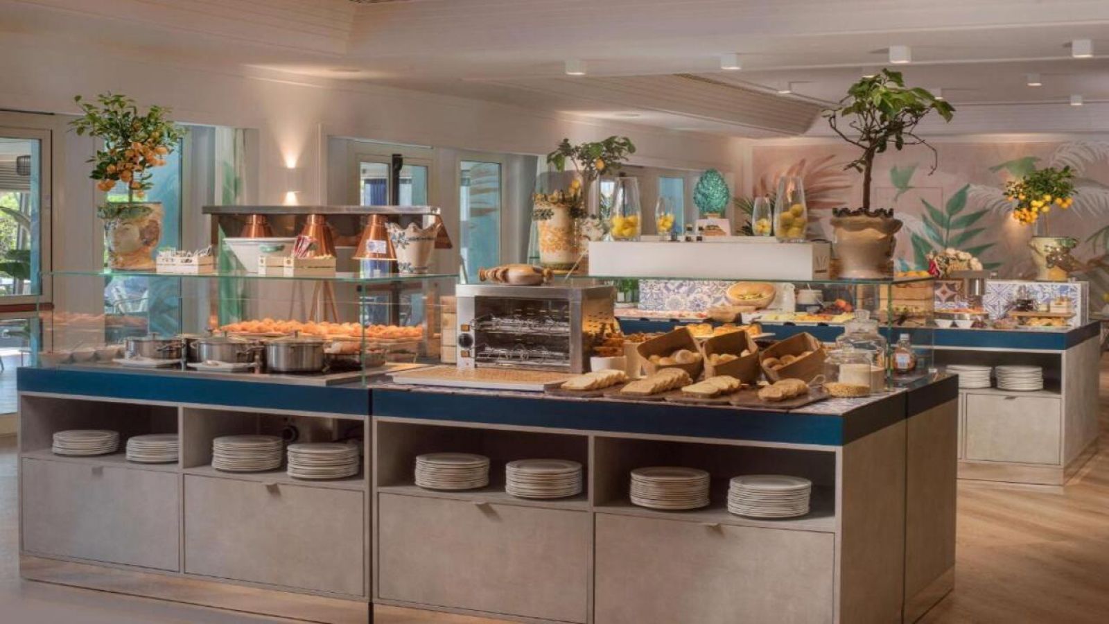 Хотелът разполага с основен ресторант, предлагащ богата селекция от италиански специалитети, средиземноморски ястия и международна кухня. Закуската се сервира на блок маса, с прясно приготвени печива, плодове и топли напитки.
