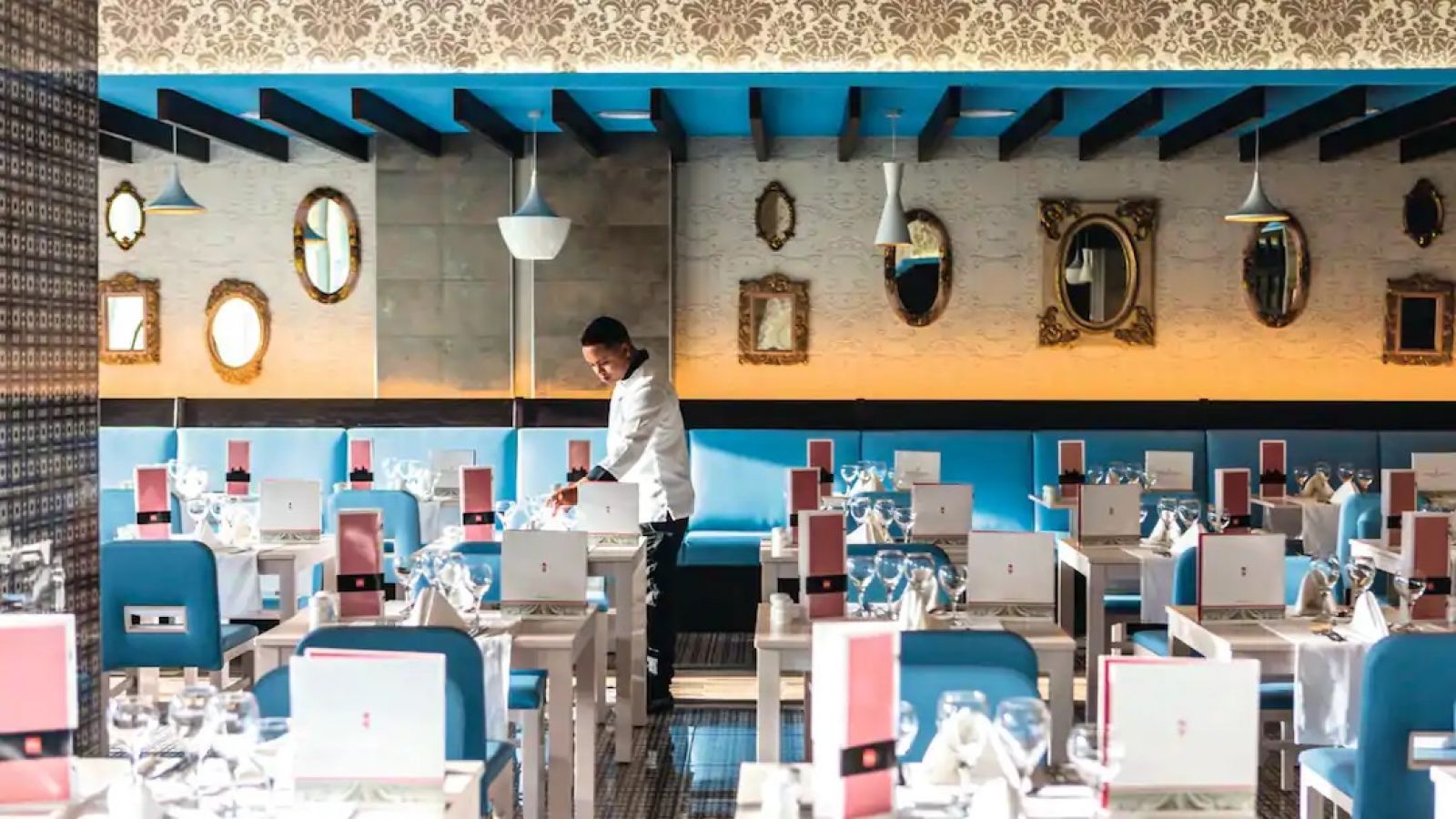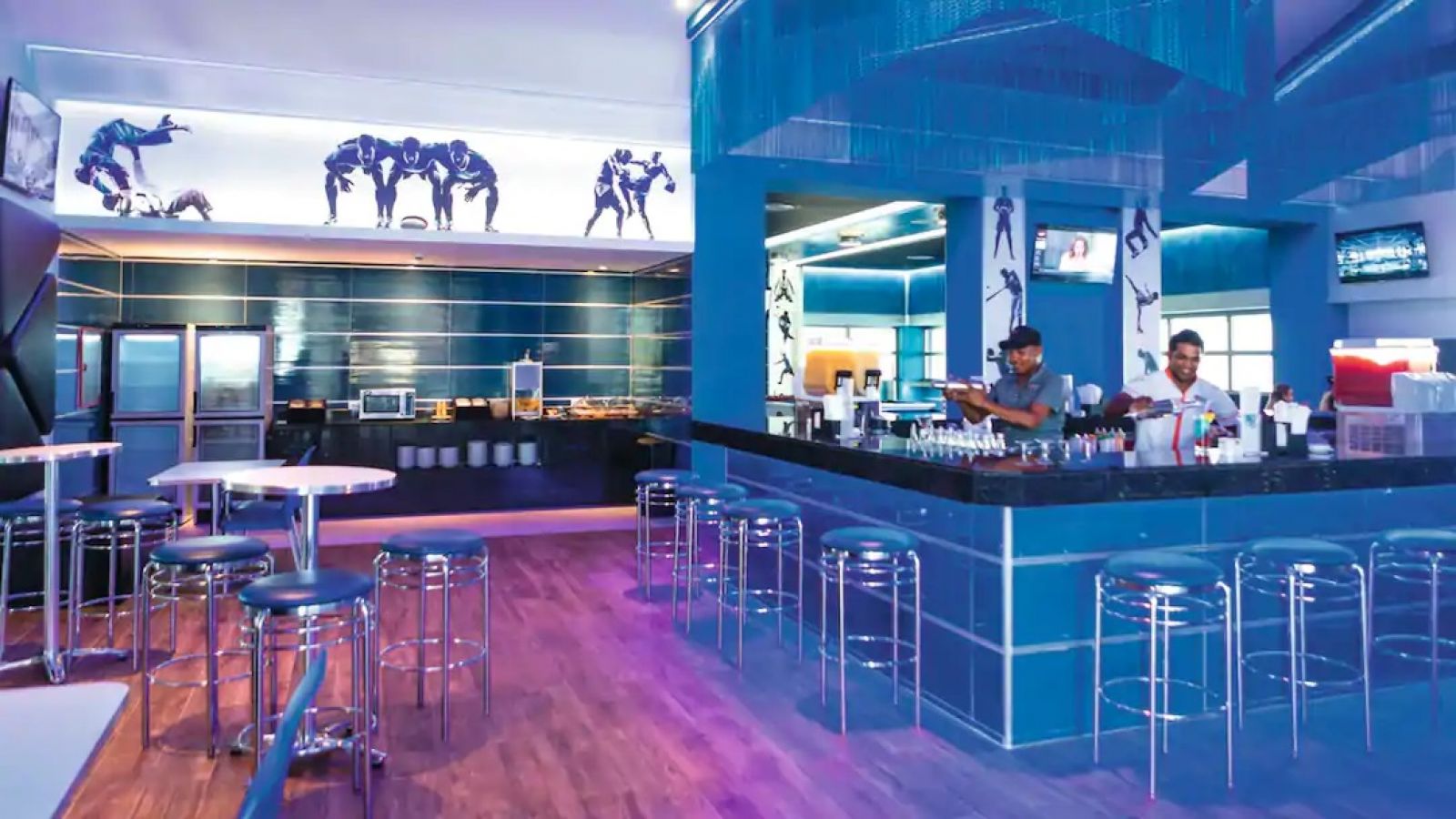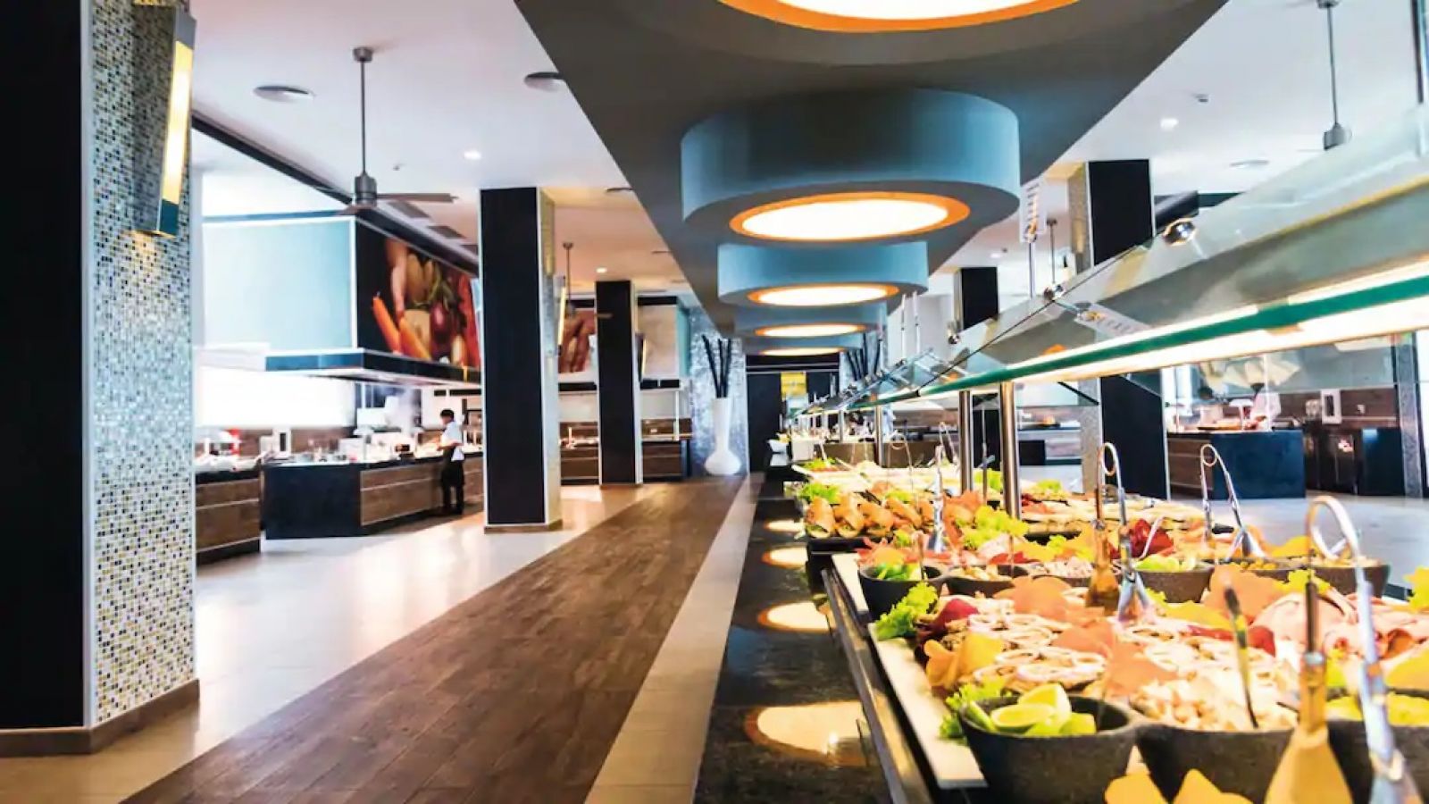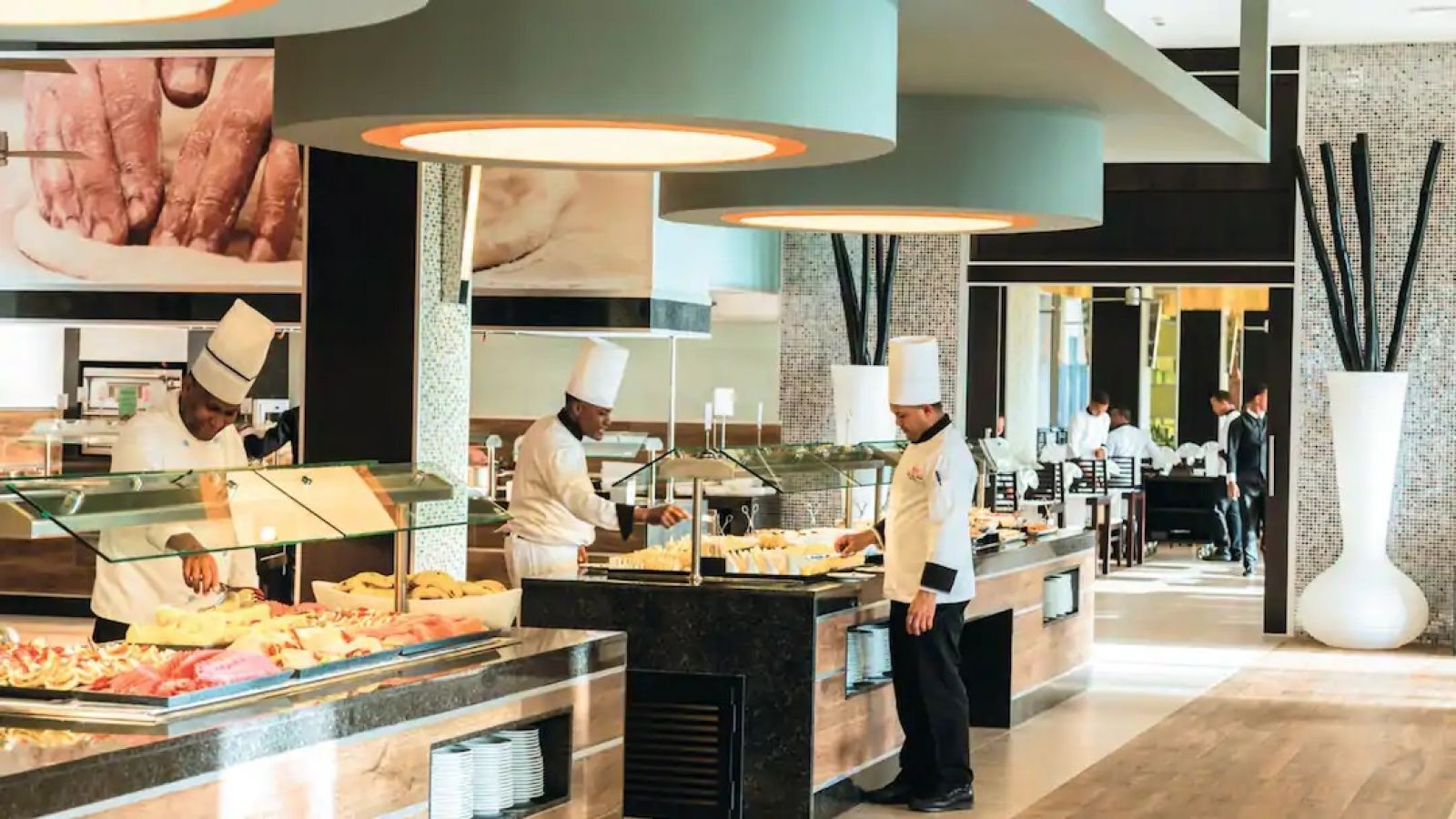 В деветте ресторанта на хотела може да опитате най-доброто от италианската, азиатската, испанската и индийската кухнята и ще се насладите на най-добрите континентални закуски на шведска маса. Освен това ще имате възможност да се насладите на автентично барбекю в бара на плажа или да организирате романтична вечеря, за да се насладите на специален момент. Хотелът също така разполага с десет бара и осем басейна, някои с плуващи барове или зони с водни пързалки, за да се насладите на освежаващ и забавен престой.