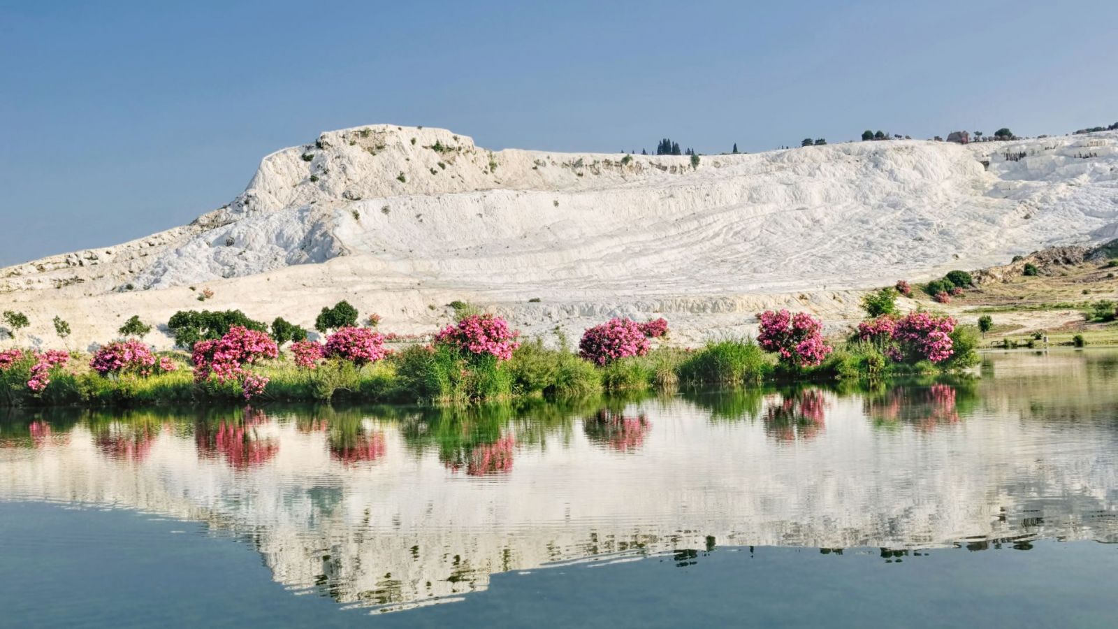 Посетете магическата и зрелищна природна местност, уникална в целия свят. Варовиковите отлагания от горещите минерални извори са облекли скалистите тераси в ослепителна белота. Оттам идва и името на Памуккале - "замък от памук". Разходете се из улиците на древния град Хиераполис и се върнете назад във времето, докато разглеждате храма на Аполон и Плутониум, портата на Домициан и главната улица. Не пропускайте да видите и античния театър, както и басейна на Клеопатра.