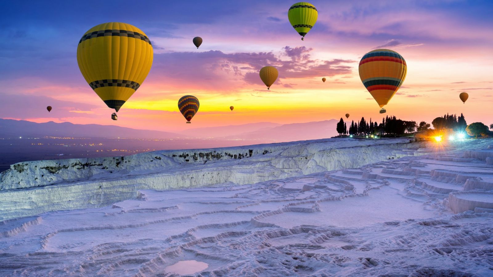 Полет с балон с горещ въздух над снежно белите варовикови травертини на Памуккале, долината Меандър и известните останки на древния град Хиераполис. Ще се насладите на спиращите дъха панорамни гледки от над 1000 метра височина, ще дегустирате шампанско и ще получите сертификат за участие в полета.