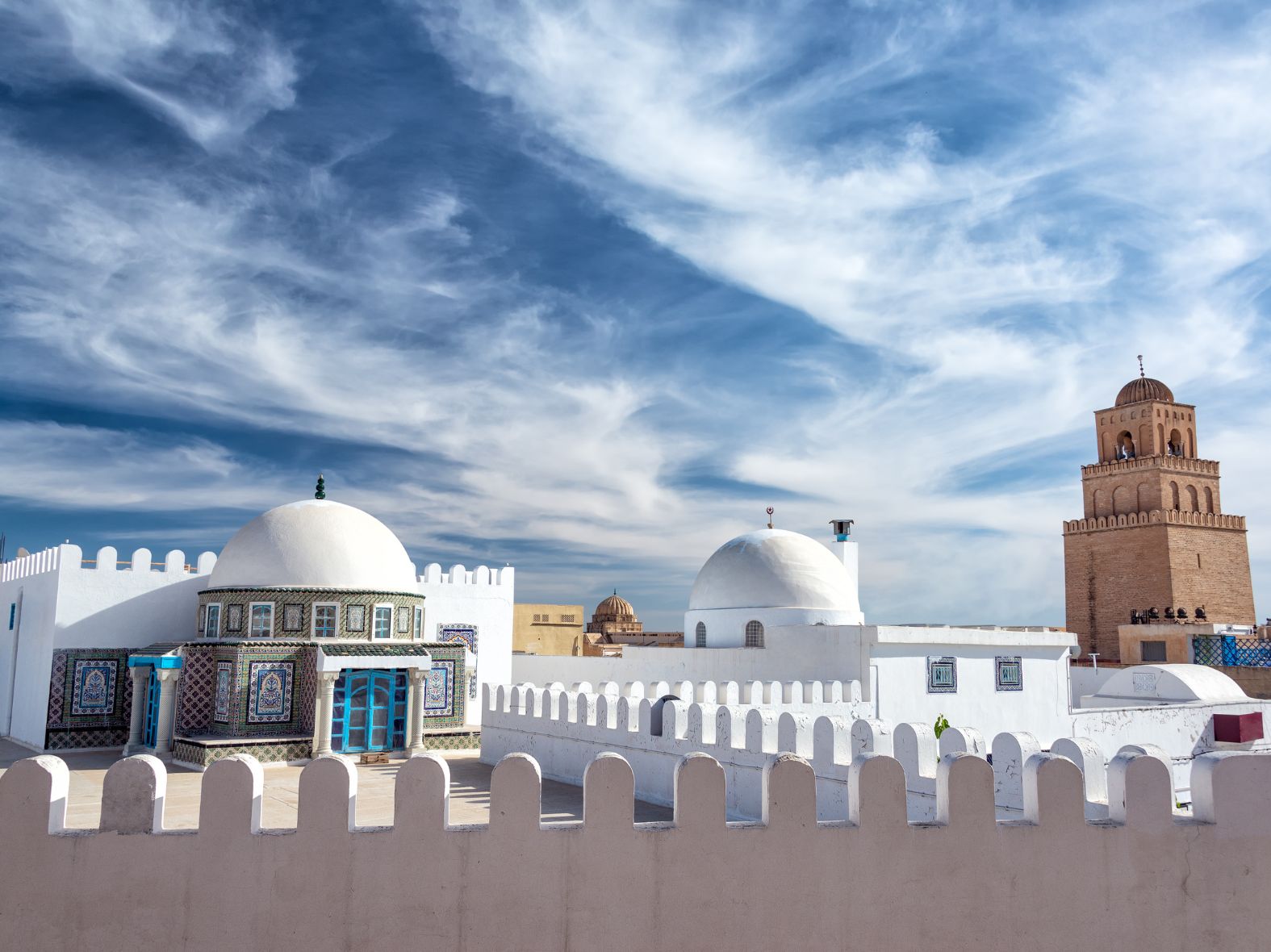 Първата спирка е град Кайруан. В ислямския свят той се счита за четвъртото по важност светилище след Мека, Медина и Йерусалим. Старата му част е позната с наименованието "Медина". Тук е разположена голямата джамия „Окба“, която се смята за един от шедьоврите на ислямската култура. Ел Джем се намира в област Махдия, между Сфакс и Сус. Тук е разположен още един обект под егидата на ЮНЕСКО – амфитеатърът, който в римска епоха е бил арена на кървави гладиаторски битки. Градът е заселен още от 3 век пр. н. е., когато се оформило пуническо селище. Започва да придобива известност едва, след като Цезар основава град Тисдрус на това място през 46 г. пр. н. е. Несъмнено най-голямата атракция днес е амфитеатъра, познат като африканския Колизеум. Той впечатлява с внушителни размери – дължина от 149 метра, височина от 40 метра и капацитет от 35 000 д. С тези размери заема първото място на континента и трето в рамките на Римската империя. От 1979 година е част от културното наследство на ЮНЕСКО.