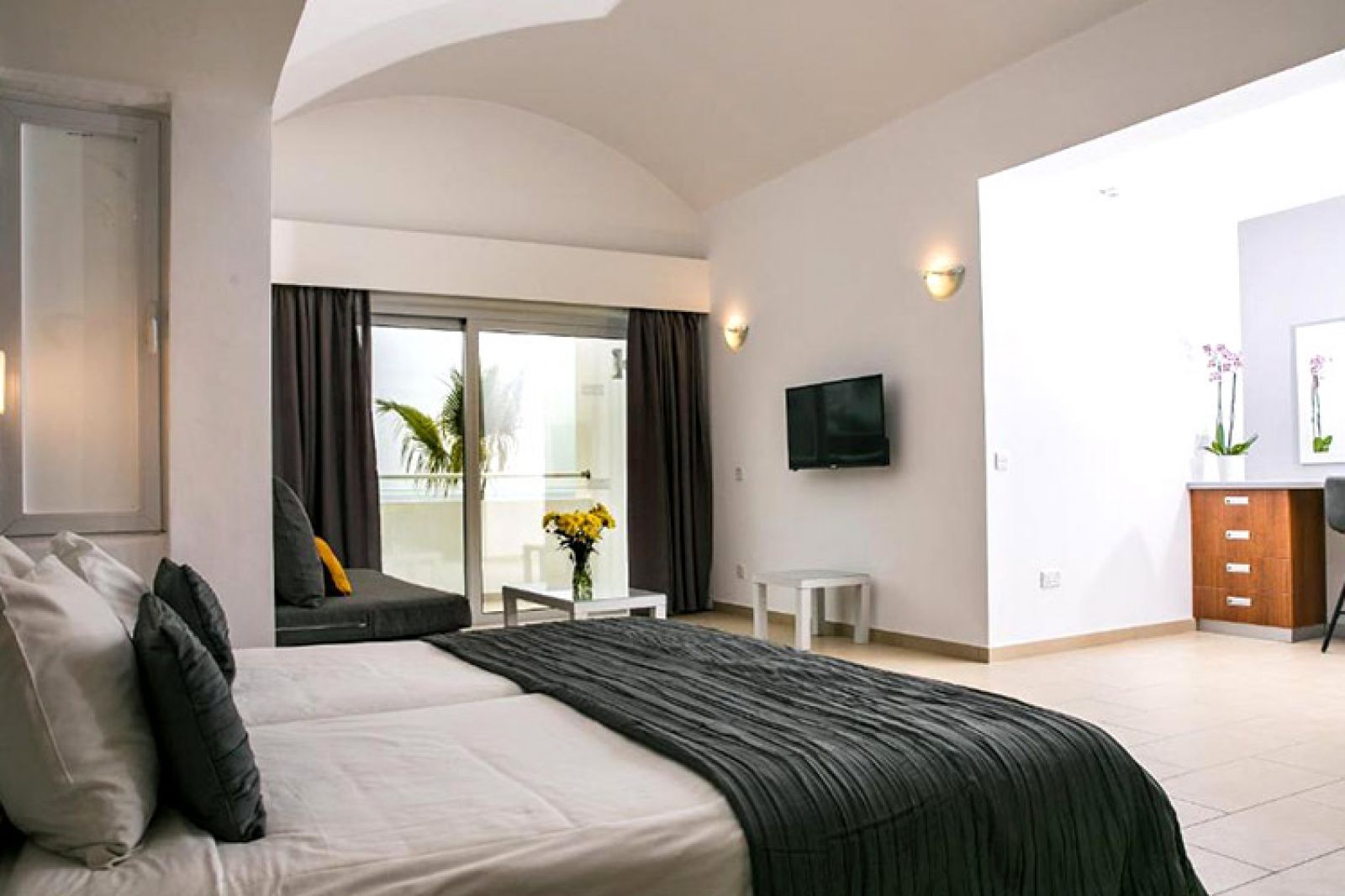 Хотелът е разположен на 100 метра от морето на плажна ивица в Пафос.
