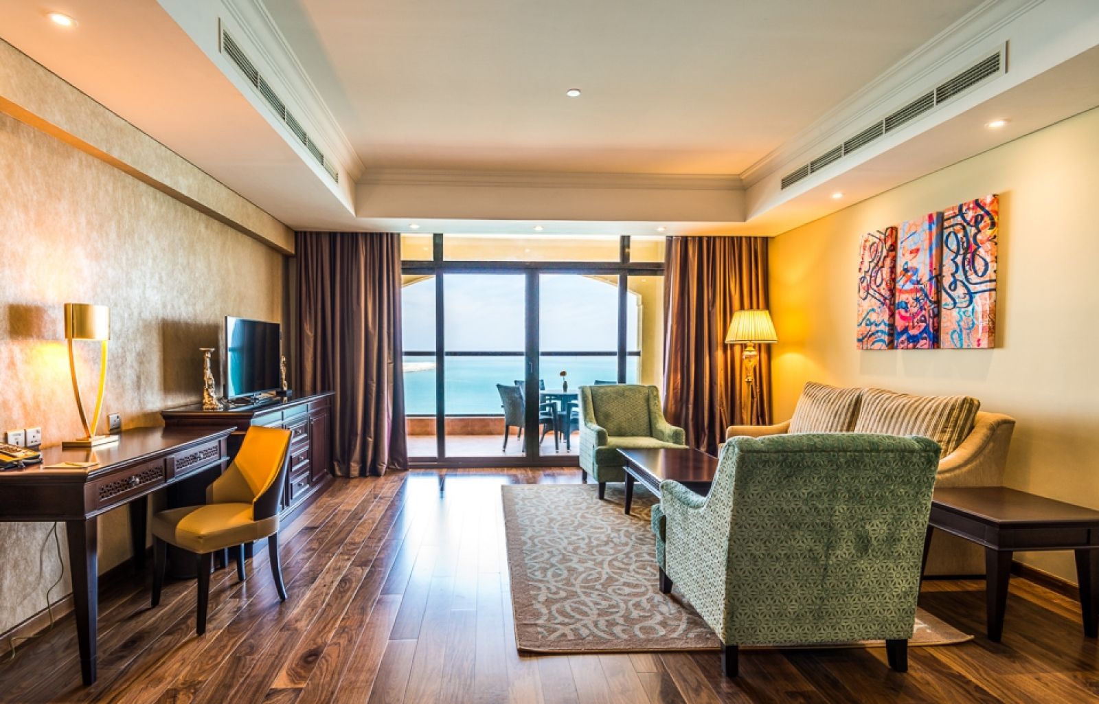 Външен басейн с отопление, 2 външни отопляеми басейна (в здравния център), Al Liwan ресторант (международна кухня, 07:00-22:30), Ресторант Zaitouna house (квартави кухня, 12:30-23:30), Италиански ресторант Al Forno, Лоби кафене аAl Majlis (10:00-22:00) Amouage (16:00-01:00) Бар на плажа Turtle, Бар на басейна, Фитнес зали, Билярд, Плажен волейбол (платен), Водни спортове (платени), Турска баня, Сауна, Масаж (платен), Салон за красота (платен), Wi-fi (безплатно), Паркинг (безплатно) Обмен на валута.