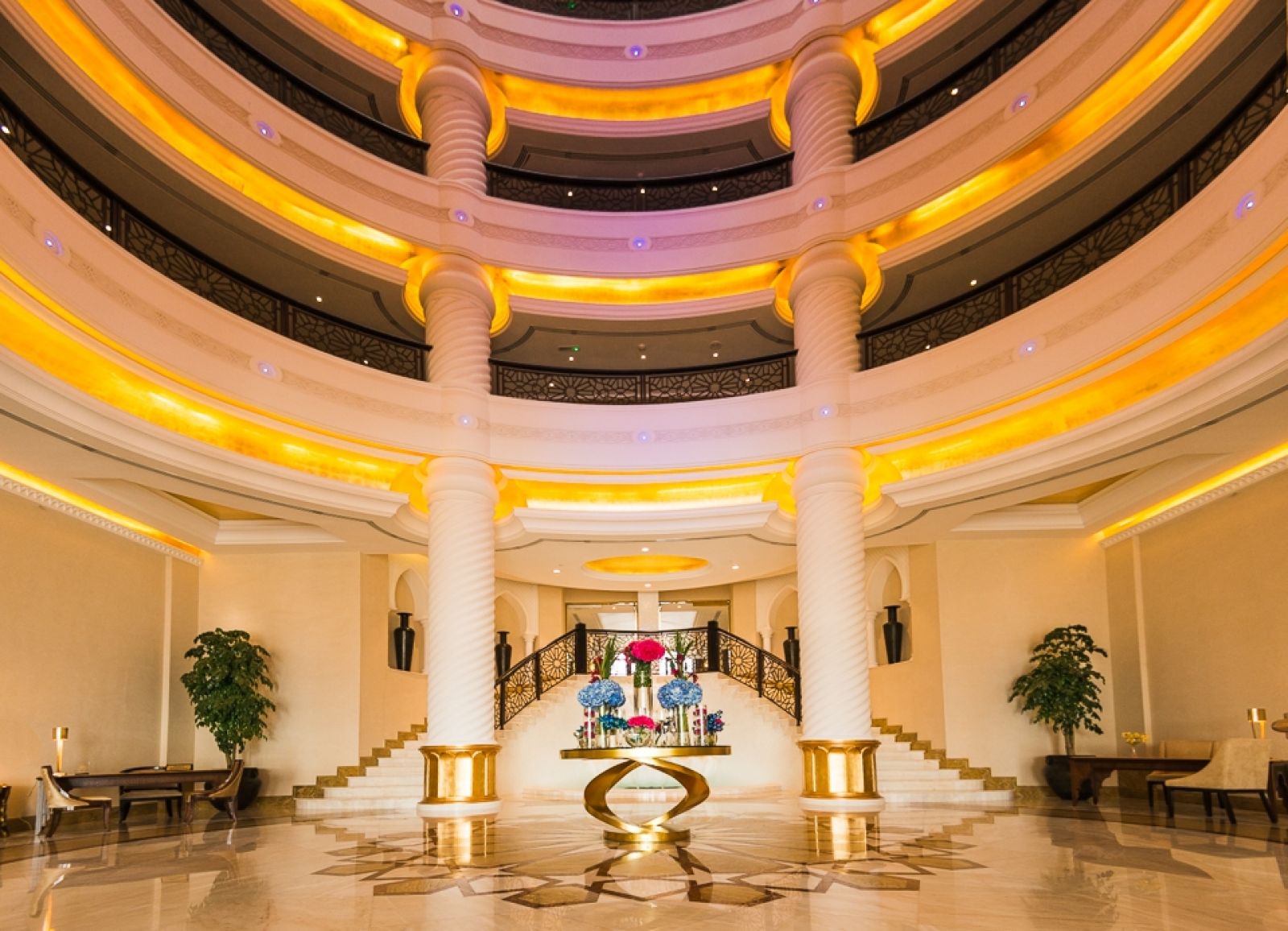 Това е най-луксозният хотел в света! За интериора на помещенията са се погрижили 250 световноизвестни дизайнери и са използвани 840кг. злато. Хотелът е истински шедьовър на архитектурата, строителството и изкуството. В сърцето на хотела се намира ресторант Al Iwan, който е не по-малко изискан. Името му на арабски означава „царска зала“. В него се предлага арабска кухня.