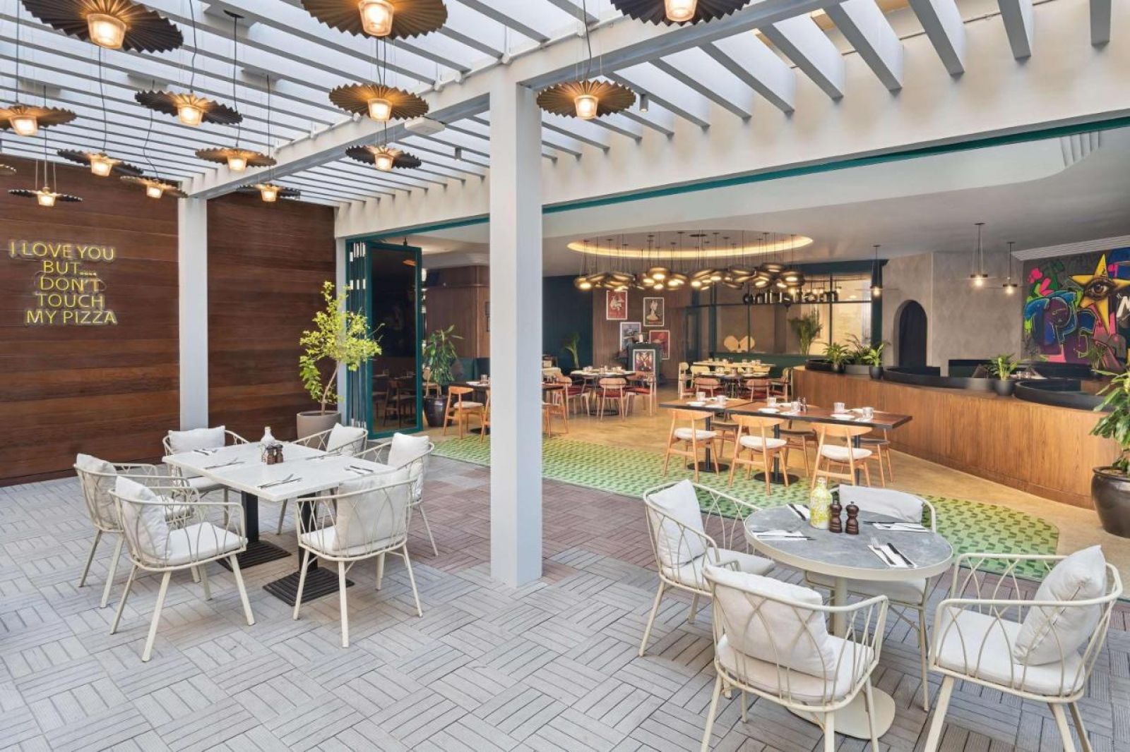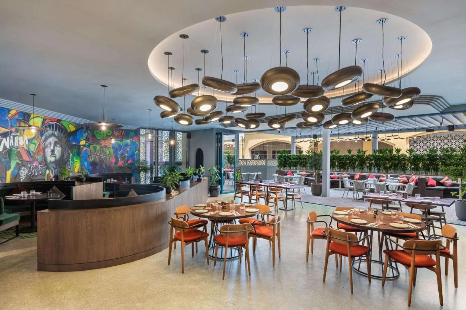 Гръцки ресторант OIA Greek Restaurant & Pool Lounge - вдъхновен от спиращата дъха красота и жизнената култура на гръцкия остров Санторини, OIA ви носи вкуса на Егейско море в сърцето на Дубай. Пицария Motorino Pizzeria е част от световноизвестна верига в Ню Йорк. Спортен бар Offside в който можете да гледате на голям екран - футбол, голф, ръгби, конни надбягвания както да се насладите на тематични вечери, музика на живо, DJ и вечерни игри. IL Motto - предлага домашно приготвени сладкиши, леки закуски, италиански вина и тематични вечери. Aqua Restaurant / Bar предлага тематични вечери и брънчове.