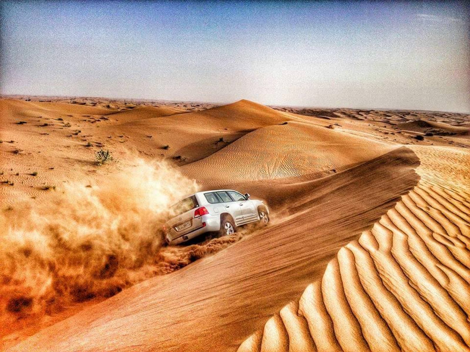 Това е незабравимо арабско приключение, което Ви отвежда далеч от шумния Дубай, сред златисти пясъчни дюни. Отпътуване с луксозни джипове 4х4 и достигате за около 45 мин. до пустинята. Тук започва истинско приключение сред дюните, невероятен смях и забавления. Фотопауза за снимане на залеза над дюните. Пристигате в бедуинско селище, където Ви очаква посрещане с арабско кафе и фурми и вечеря барбекю под открито небе. Тук можете да се облечете в традиционни арабски дрехи, да пояздите камили, да покарате сърф или ски по пясъчните склонове, да си направите временна татуировка с къна, да пушите наргиле. Преди да се завърнете в Дубай ще потанцувате местни танци на фона на арабска музика.