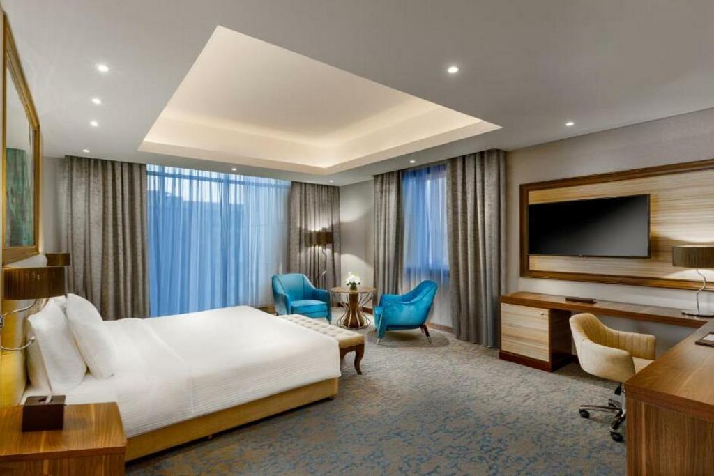 Климатик, Настолен компютър, Чайник, мини-бар, сейф, Плоскоекранен телевизор, Спално бельо и отделна баня с биде, Кърпи, Душ, Безплатни тоалетни принадлежности. Някои стаи разполагат с кухненски бокс с хладилник.