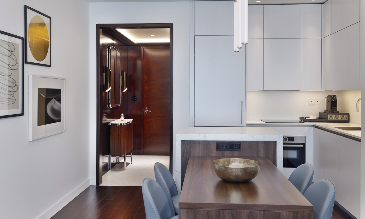 Deluxe one-bedroom suite: 113 кв. m, спалня, Кинг-размер легло, хол, трапезария, баня, душ и вана, балкон.