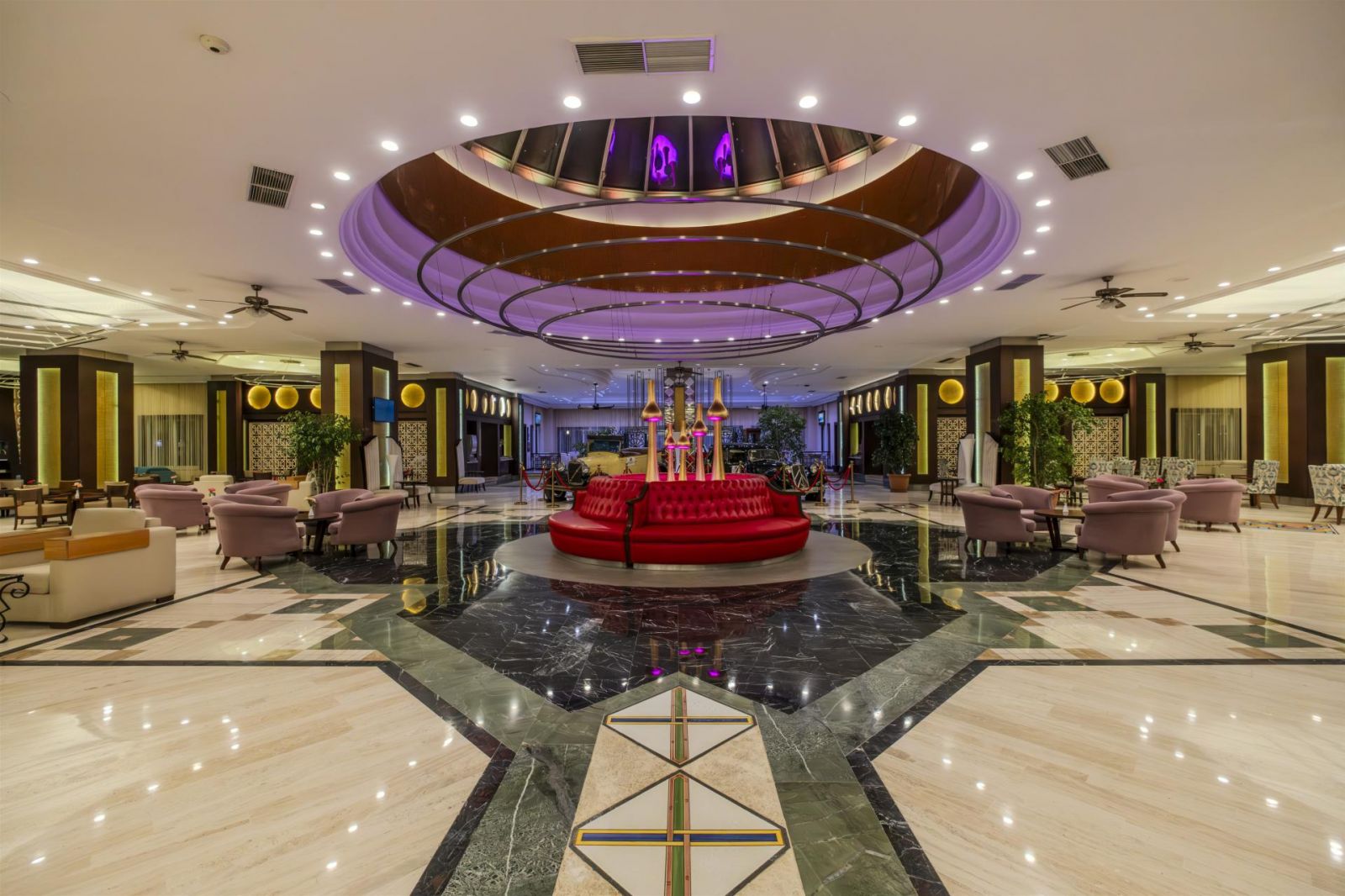 Основен ресторант, 3 а-ла-карт ресторанта (рибен, турски, италиански – срещу заплащане с предварителна резервация, снек ресторант, гьозлеме, сладоледена къща, сладкарница, 5 бара, 2 открити и 1 закрит басейн, 4 водни пързалки, амфитеатър, СПА център, дискотека, магазини, 12 конферентни зали, паркинг.