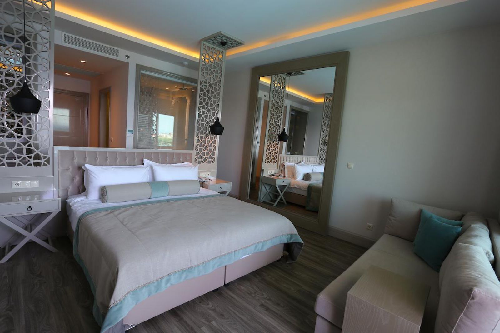 Основен ресторант, 3 а-ла-карт ресторанта (рибен - 1 безплатно посещение при минимум 7 нощувки, турски, италиански - срещу заплащане), сладкарница, 6 бара, 3 открити и 2 закрит басейн, аквапарк, амфитеатър, СПА център, дискотека, магазини, паркинг.