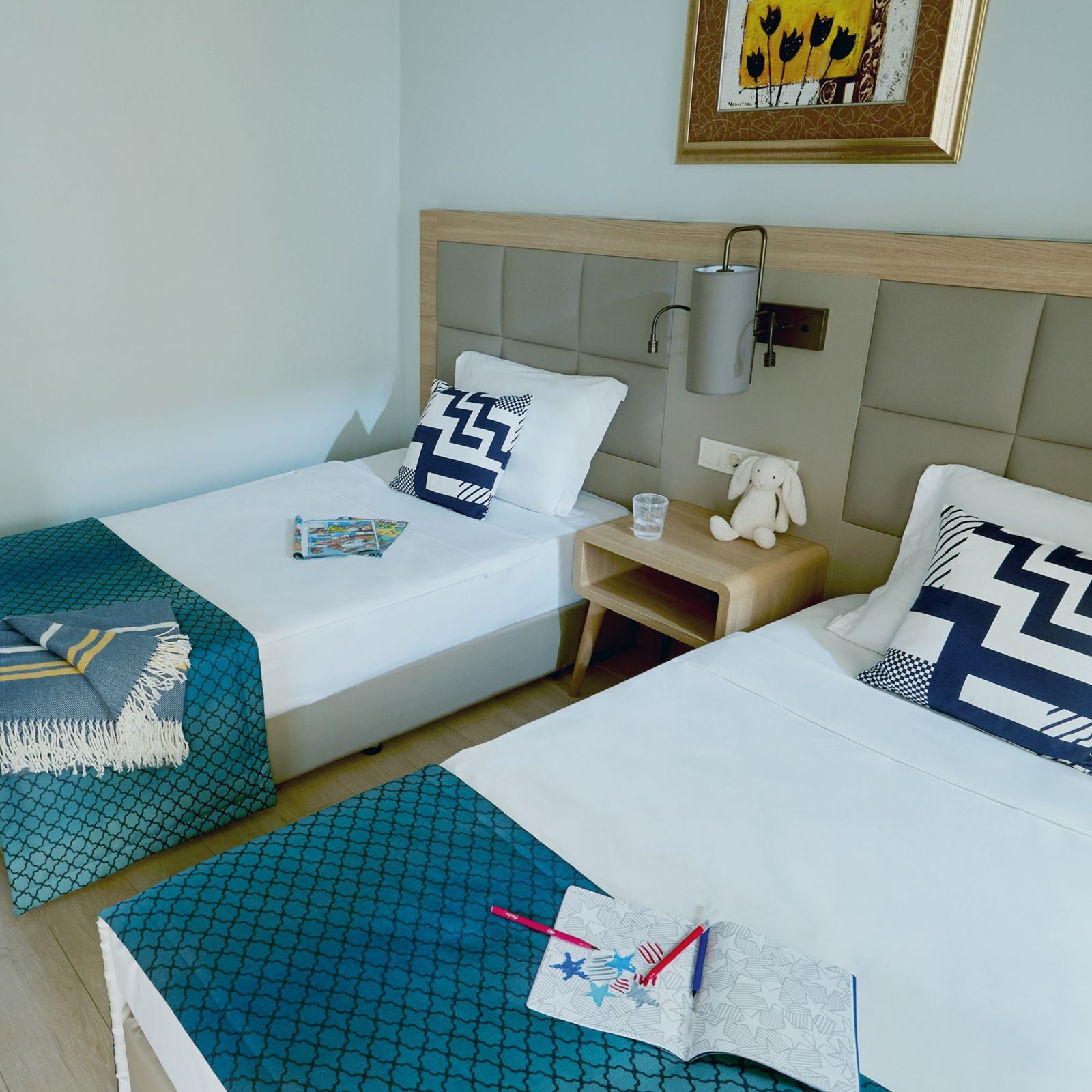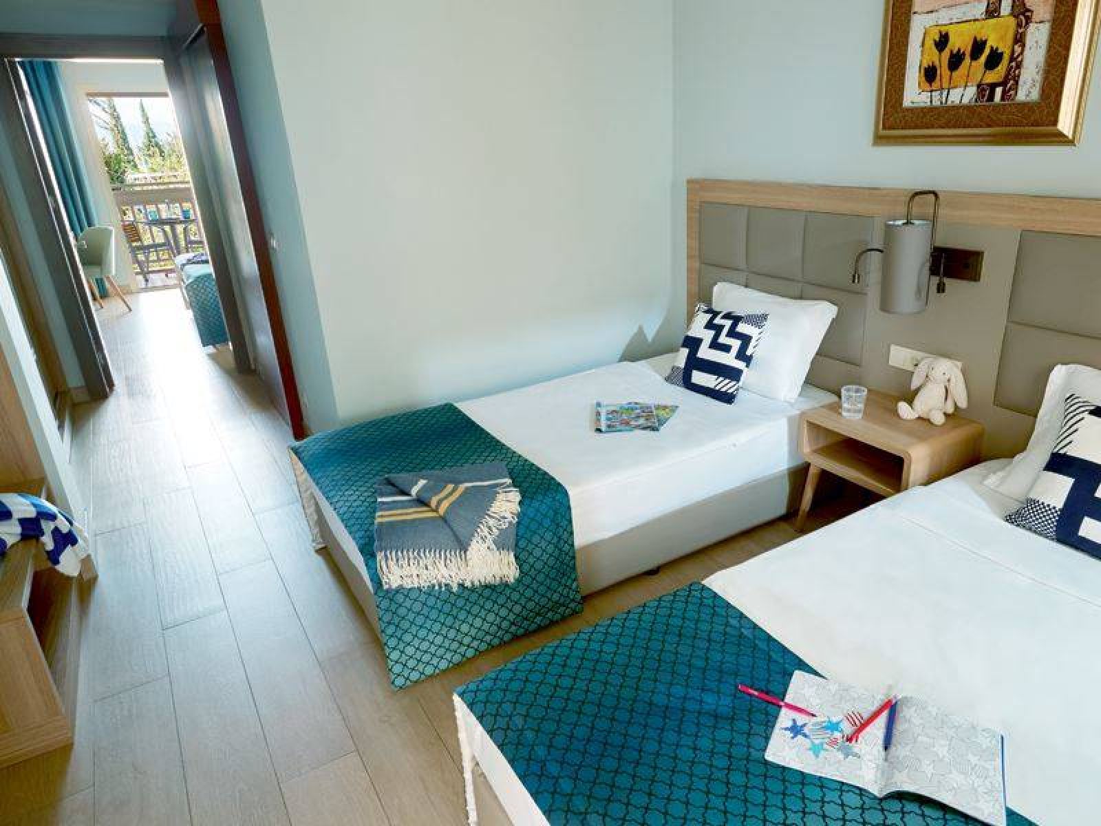 Хотелът разполага с общо 335 стаи, от които 83 Standard Room (25 м²), Family Room (1 спалня - 35 м²), Family Suites (2 спални, 1 баня - 37 м²), Superior Family Suites (3 спални, 2 бани - 55 м²), Villa (2 спални, 2 бани - 90 м²), стаи за хора с увреждания. Всички стаи са оборудвани с климатик, телевизор, телефон, баня с душ, сешоар, сет за чай/кафе, минибар (срещу заплащане), сейф (безплатен). Почистване на стаите и смяна на кърпите – всеки ден, смяна на спалното бельо – 2 пъти в седмицата.