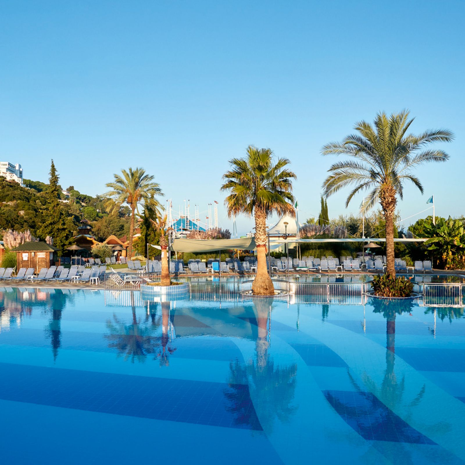 Намира се на 70 км от Измир, на 130 км от летище Милас, на 8 км от центъра на Кушадасъ, на брега на морето. Построен през 2006 г. върху обща площ от 90 000 м². Реновиран през 2019 г. Хотелът е удостоен със сертификат "Зелена звезда" за опазване на околната среда.