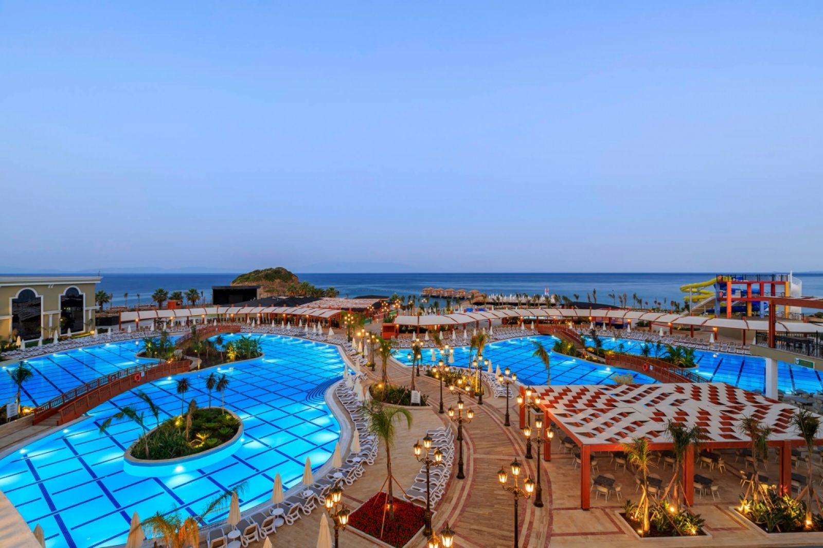 Намира се на 35 км от летище Измир, на 160 км от летище Милас, на 35 км от центъра на Кушадасъ и на 3 км от центъра на Йоздере. Построен през 2015 г., с обща площ 45 000 м².