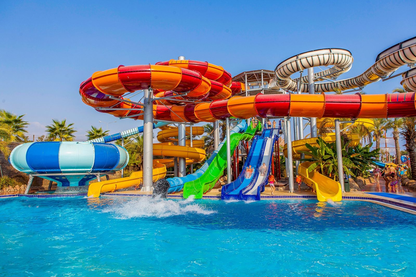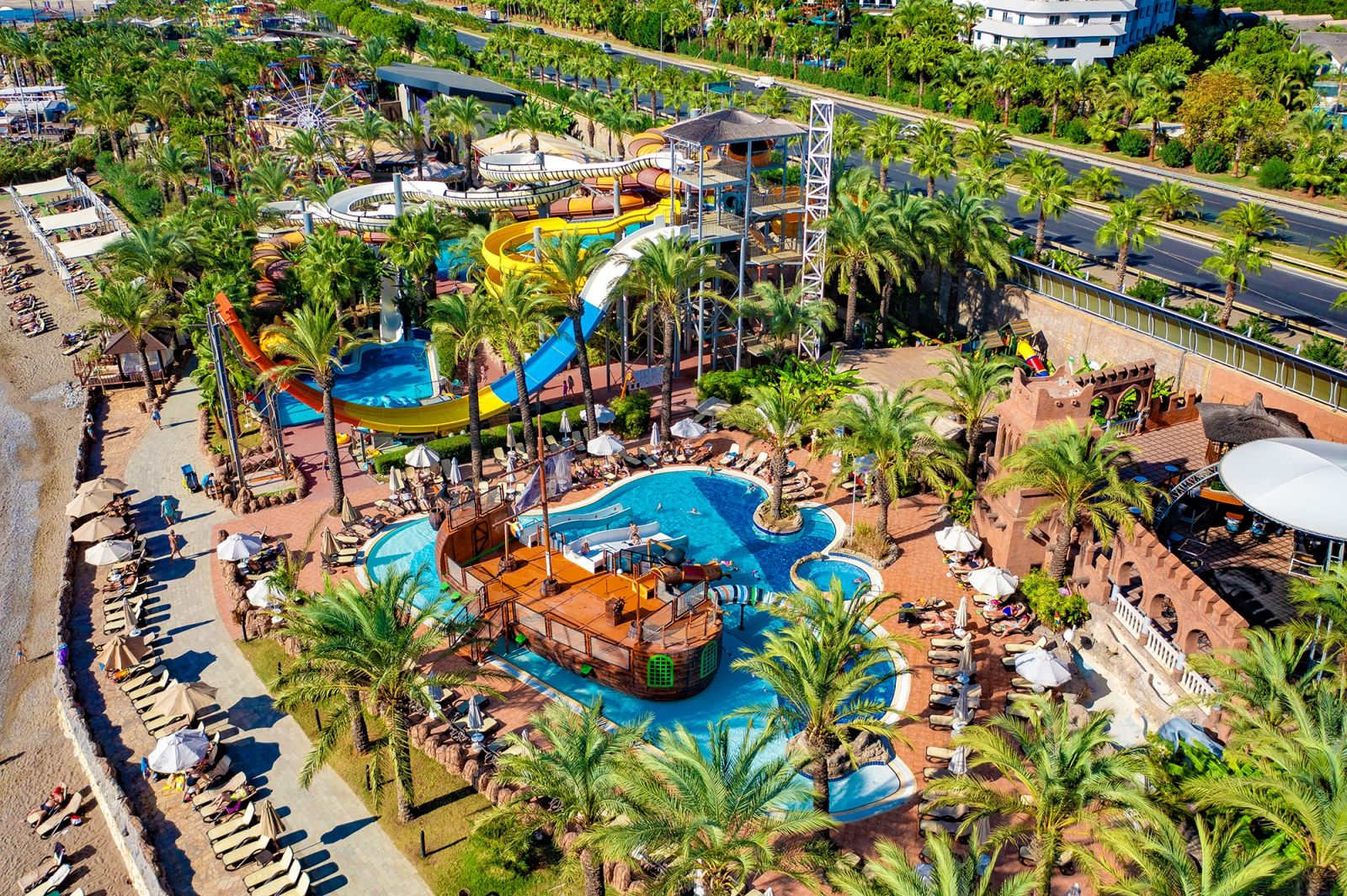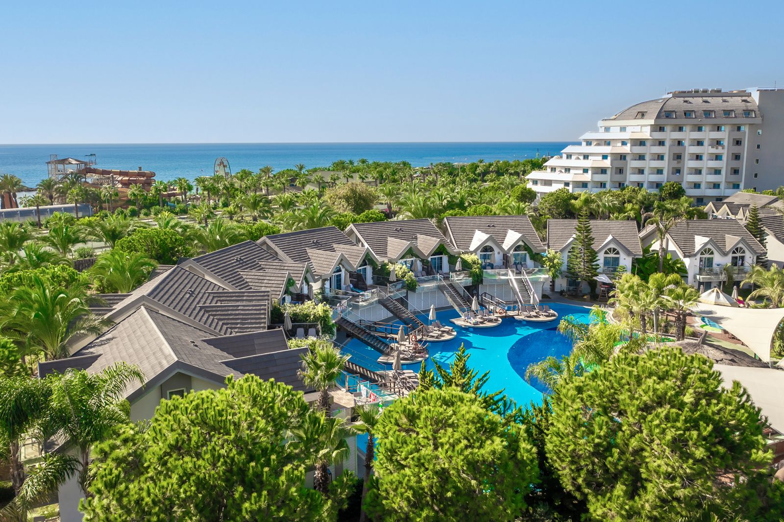 3 основни ресторанта (Villa ресторант - само за гостите, настанени в типове помещения: Villa, Chalet и Swim Up), 5 а-ла-карт ресторанта (турски, италиански, мексикански, азиатски, рибен – срещу заплащане, с предварителна резервация), 6 снек бара, 2 сладкарници, 16 бара (2 от които срещу заплащане – витамин бар и бленд кафе), дискотека, 11 открити басейна, 2 закрити басейна (отопляеми в периода до 15.04 и след 15.10), 6 аквапарка с общо 36 водни пързалки за деца и възрастни, СПА център, магазини, 1 конферентна зали, паркинг.