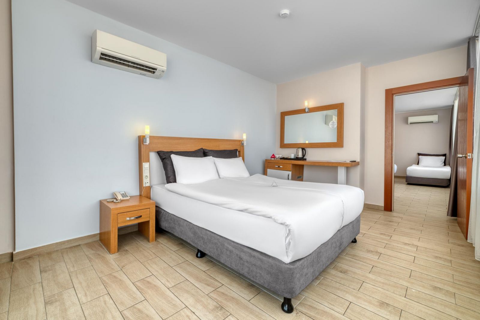 Всички стаи са оборудвани с климатик, телевизор, телефон, баня с душ, сешоар, сет за чай/кафе, минибар (безплатен), сейф (платен), балкон.