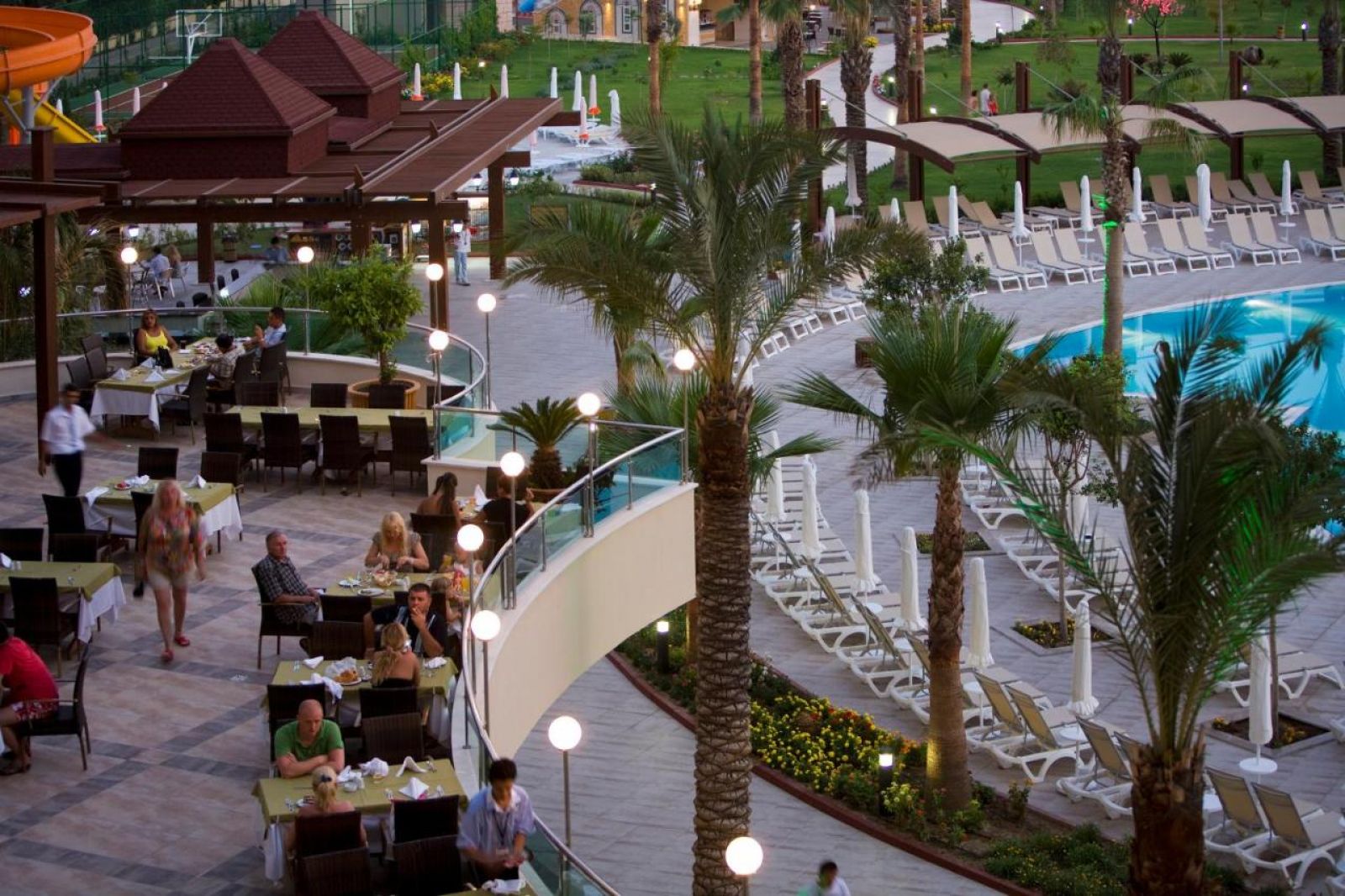 Основен ресторант, 2 а - ла - карт ресторанта, 6 бара, 3 басейна, аквапарк. За децата: детски басейн, аквапарк, анимация Безплатни услуги: сауна, турска баня, фитнес, аеробика, мини клуб, мини - футбол, дискотека - напитки платено, безжичен интернет в лоби бар, баскетбол, сейф, дартс. Платени услуги: масаж, детегледачка, осветление тенис корт, билярд, уроци по тенис, водни спортове, фризьор, Интернет кафе, мини футбол, център за красота, СПА-център, билярд. Плаж: Пясъчно - чакълест. Плажни чадъри, матраци и шезлонги – безплатно.