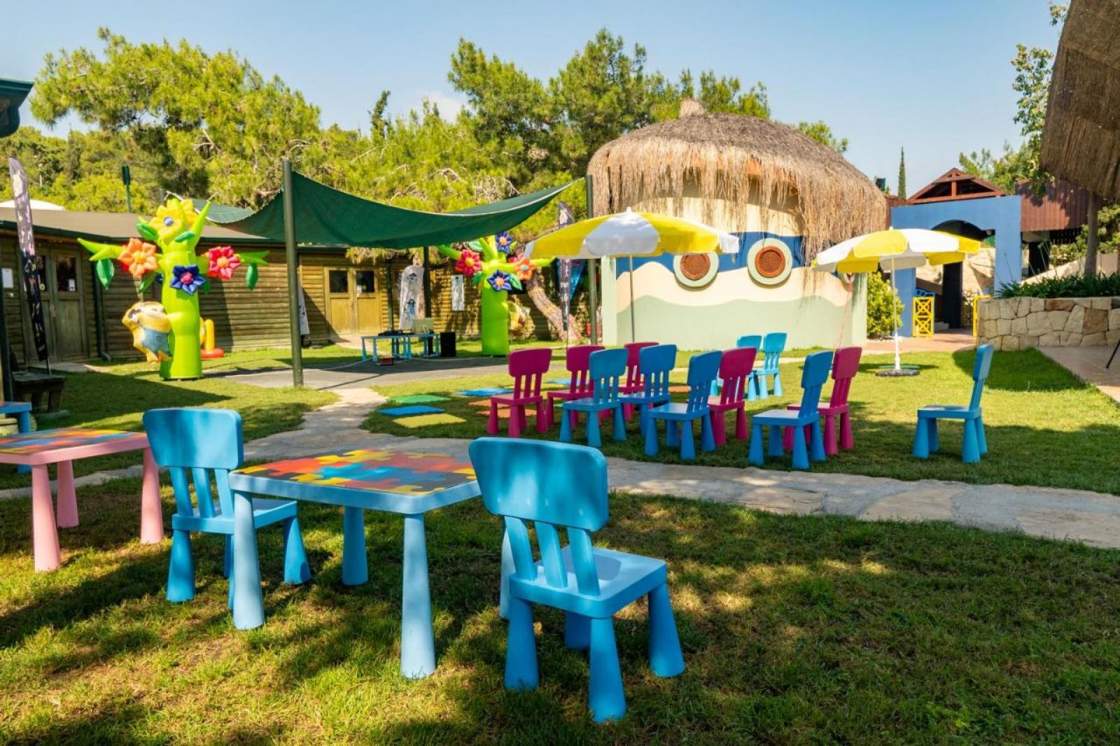 ПЛАЖ: Собствен, пясъчен, удостоен със сертификат Син Флаг за изключително чиста вода. На басейна и на плажа: чадъри, шезлонги, матраци – безплатно. Плажни хавлии: безплатно.